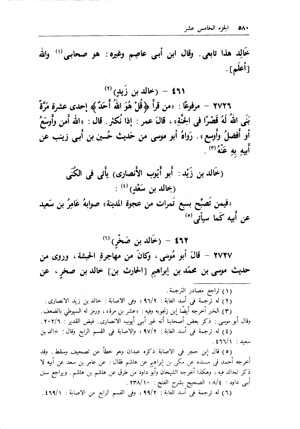 (¬3) له ترجمة في أسد الغابة: 2/97؛ والإصابة في القسم الرابع وقال: خالد بن سعيد: 1/466.