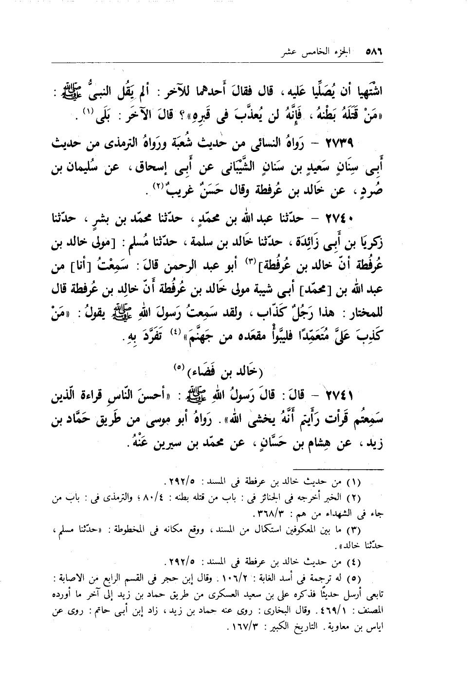2739 - رواهُ النسائي من حديث شعبة ورواه الترمذي من حديث أبي سنانٍ سعيدٍ بن سنانٍ الشيباني عن أبي إسحاق، عن سُليمان بن صُردٍ، عن خالد بن عُرفطة وقال حسنٌ غريبٌ (¬1) .