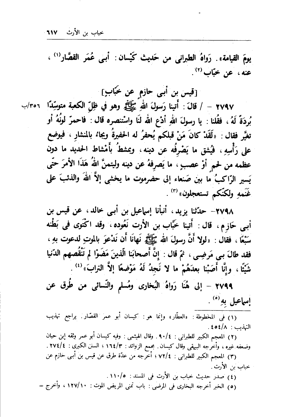(¬1) المعجم الكبير للطبراني: 4/72؛ وأخرجه من عدة طرق عن قيس بن أبي حازم عن خباب بن الأرت.