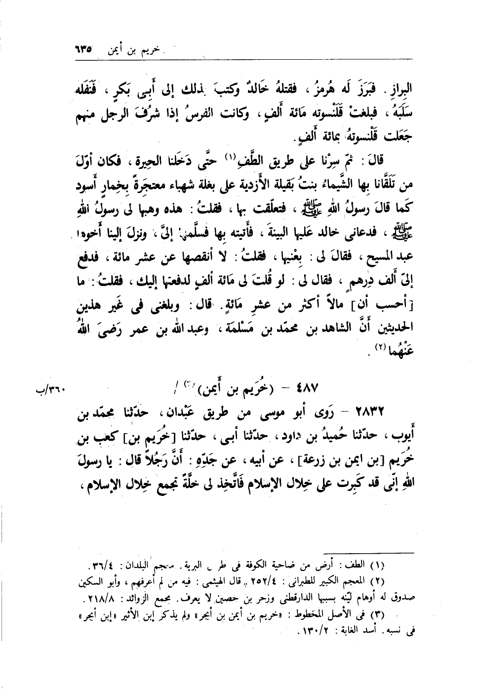 (¬1) في الأصل المخطوط: (خريم بن أيمن بن أبجر) ولم يذكر ابن الأثير (إبن أبجر) في نسبه. أسد الغابة: 2/130.