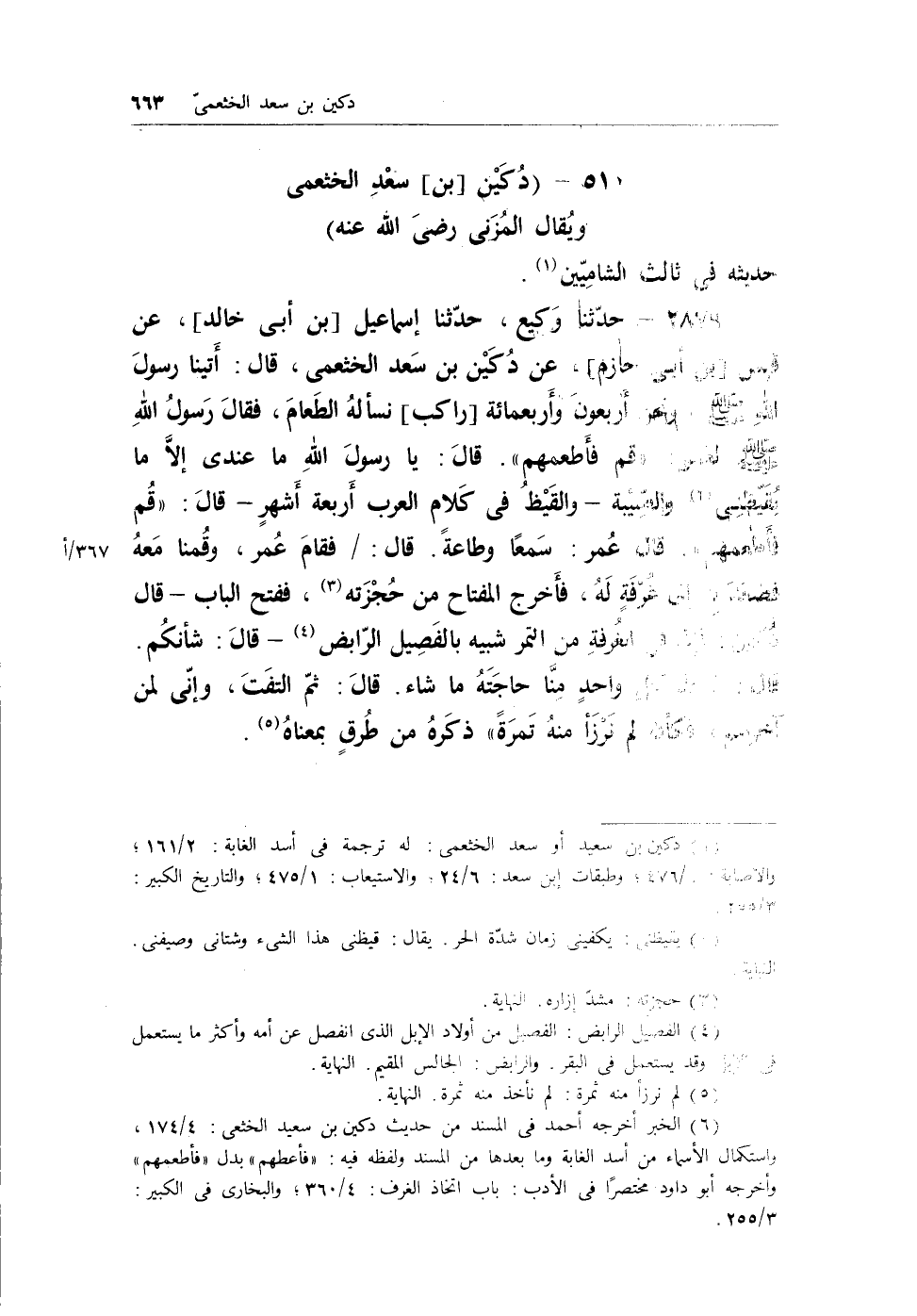 (¬1) دكين بن سعيد أو سعد الخثعمي: له ترجمة في أسد الغابة: 2/161؛ والإصابة: 1/476؛ وطبقات ابن سعد: 6/24؛ والاستيعاب: 1/475؛ والتاريخ الكبير: 3/255.