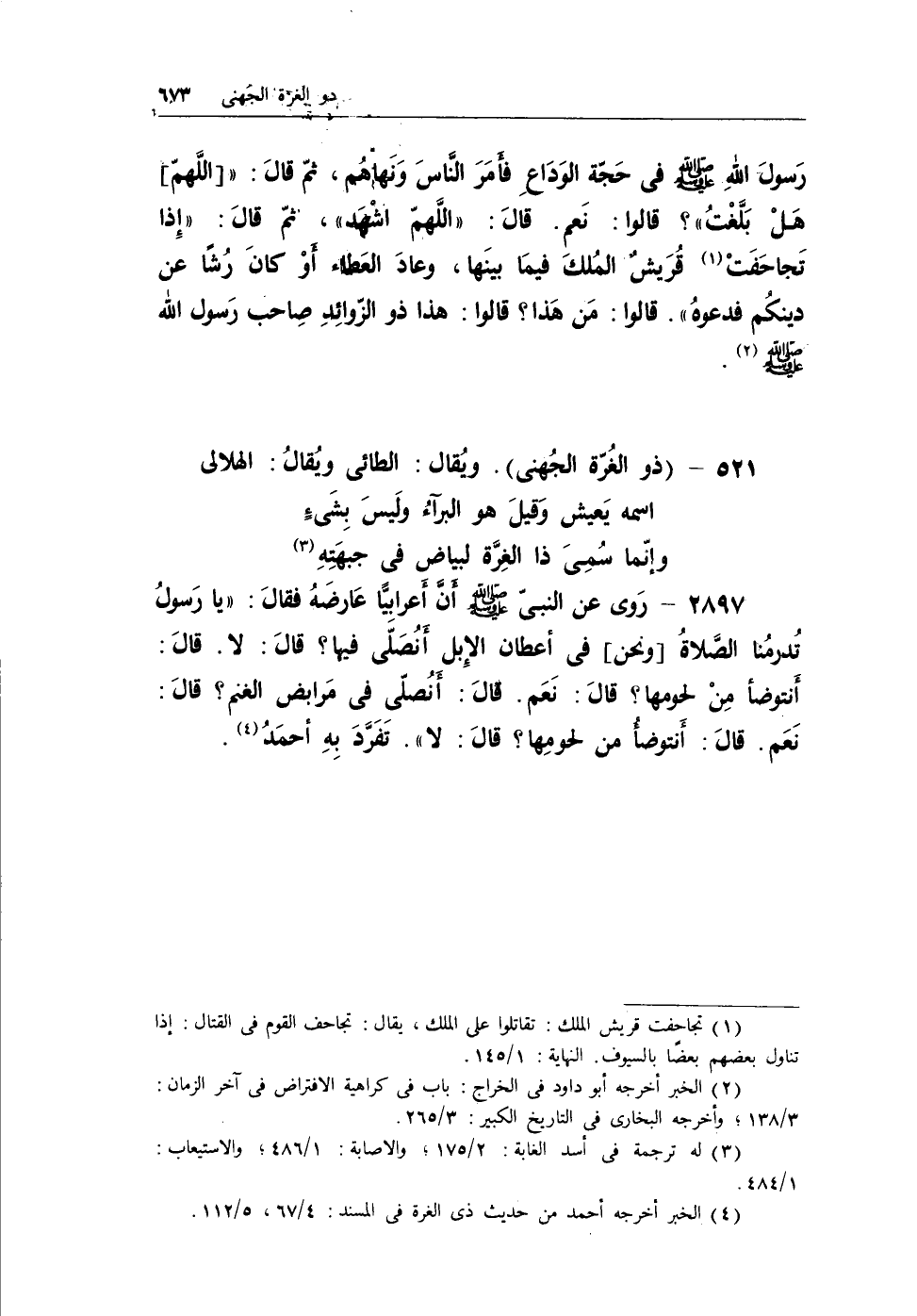 (¬2) الخبر أخرجه أحمد من حديث ذي الغرة في المسند: 4/67، 5/112.