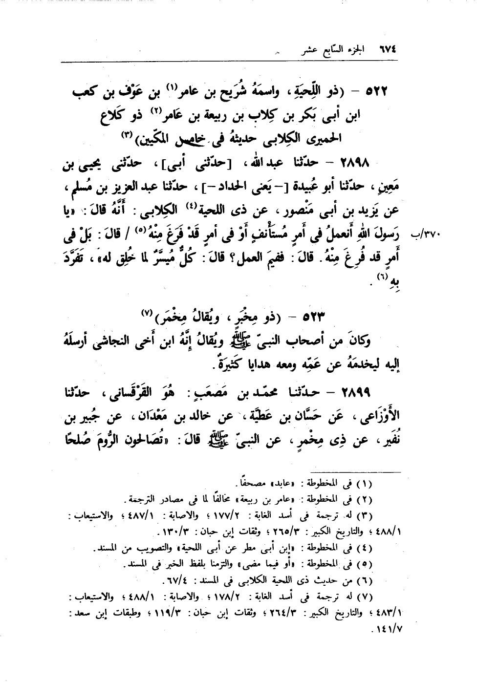 522 - (ذو اللحية، واسمهُ شُريح بن عامر (¬1) بن عوف بن كعب