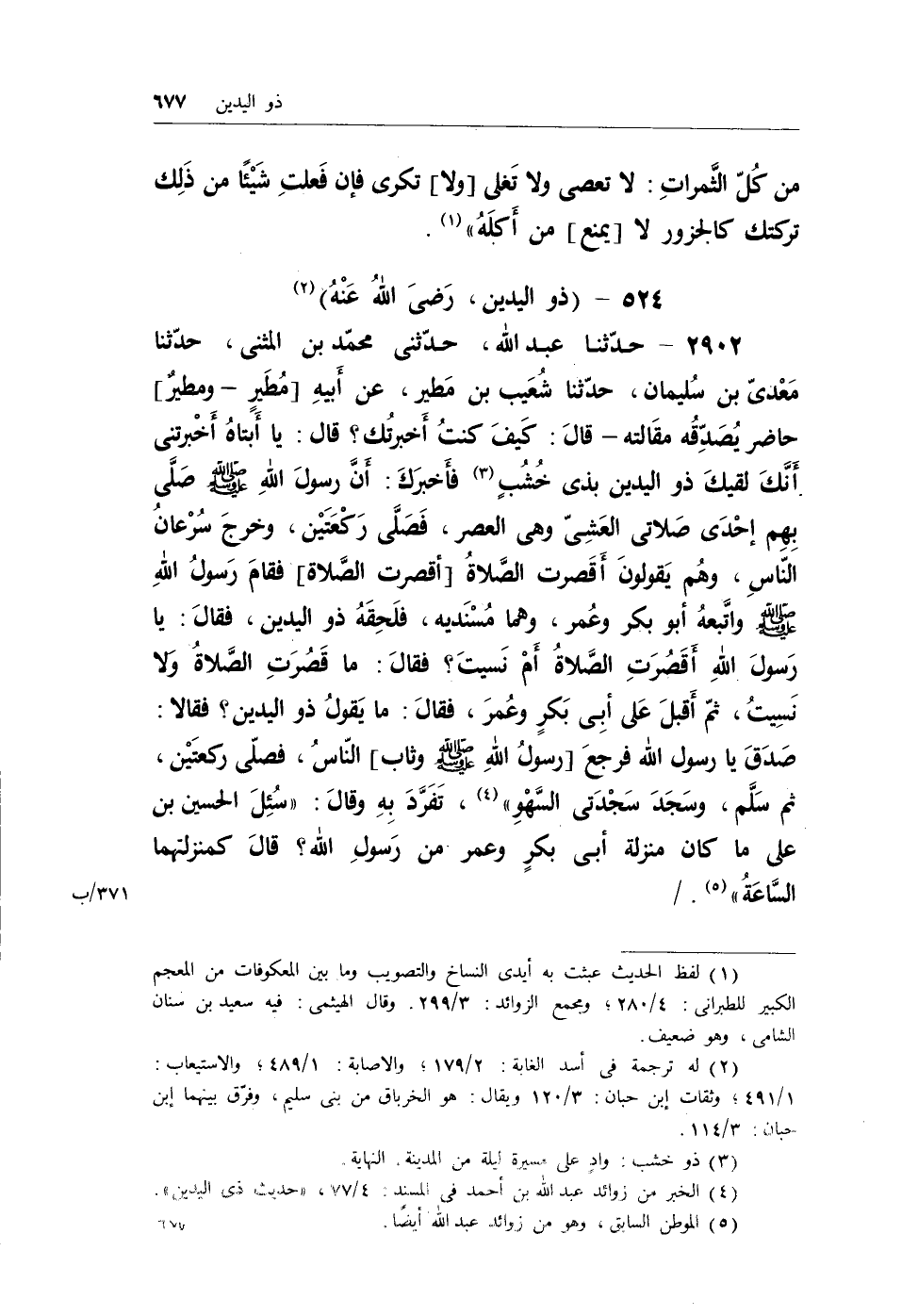 (¬3) الخبر من زوائد عبد الله بن أحمد في المسند: 4/77،) حديث ذي اليدين) .