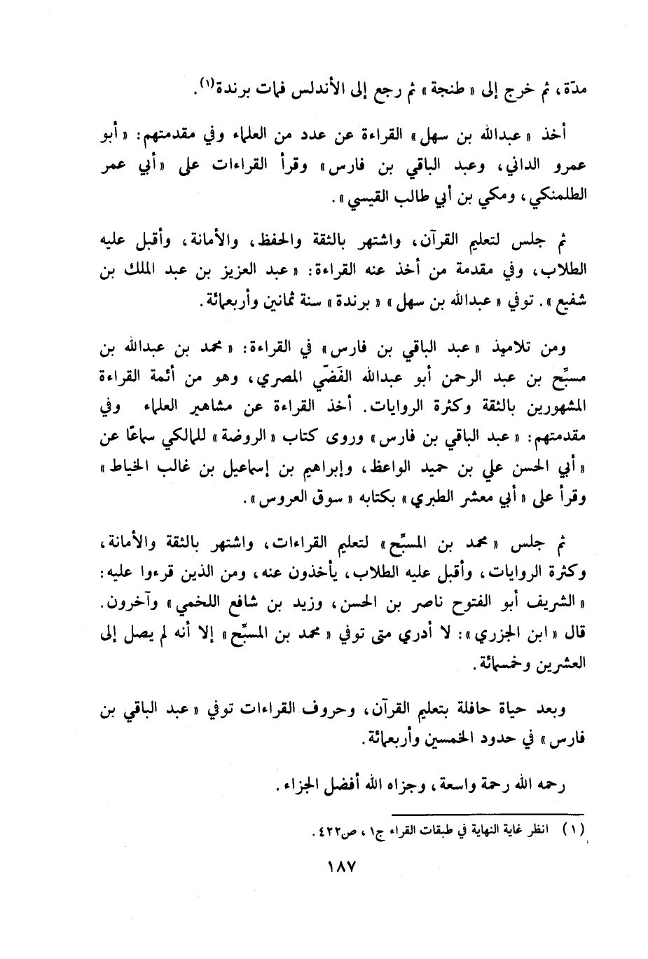 (¬1) انظر غاية النهاية في طبقات القراء ج 1، ص 422.