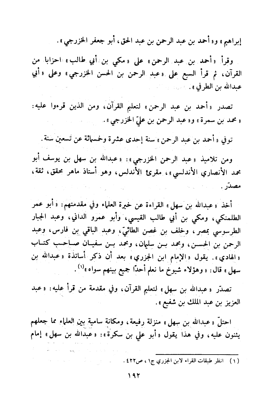 (¬1) انظر طبقات القراء لابن الجزري ج 1، ص 422.