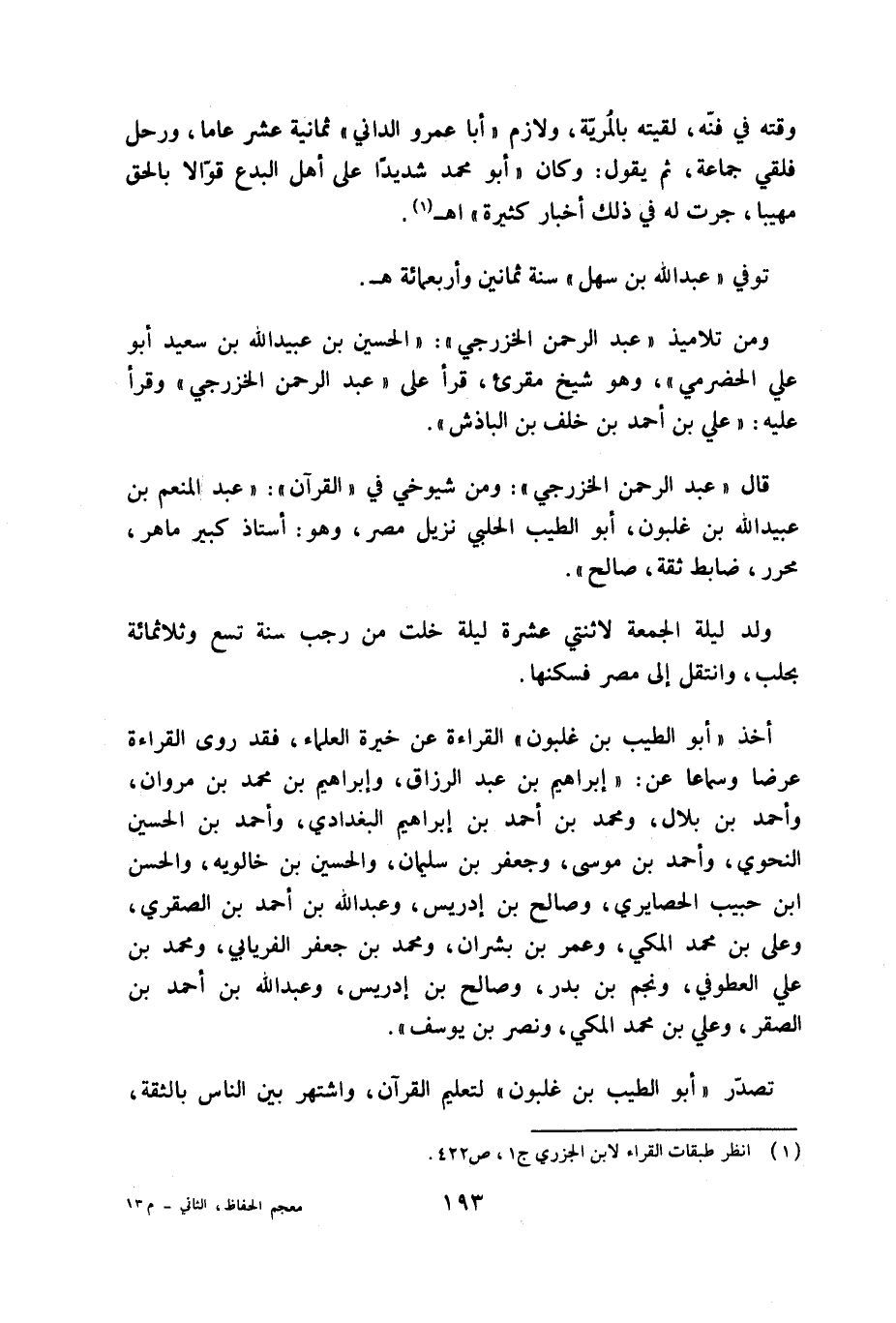 (¬1) انظر طبقات القراء لابن الجزري ج 1، ص 422.