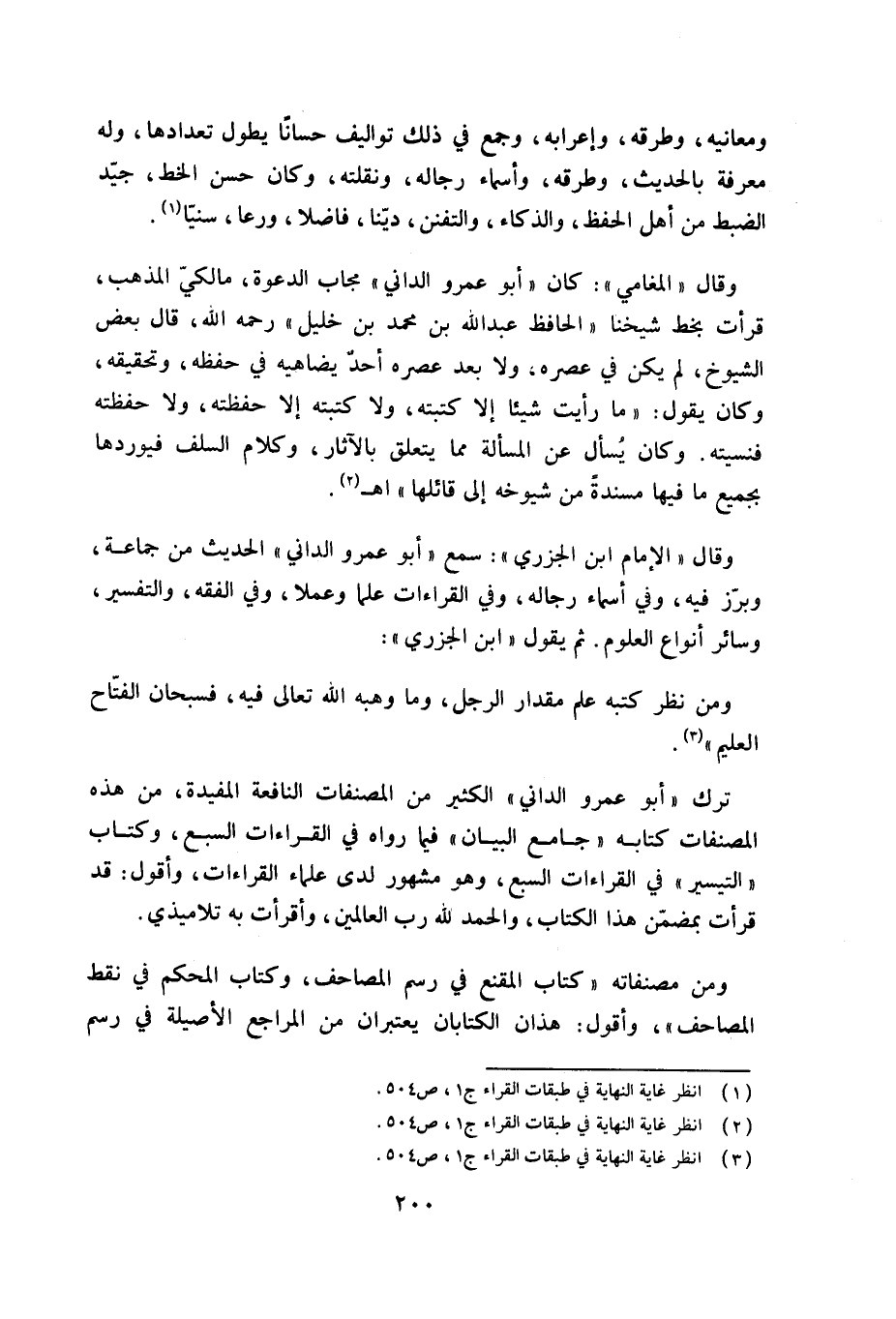 ومن مصنفاته «كتاب المقنع في رسم المصاحف، وكتاب المحكم في نقط المصاحف»، وأقول: هذان الكتابان يعتبران من المراجع الأصيلة في رسم