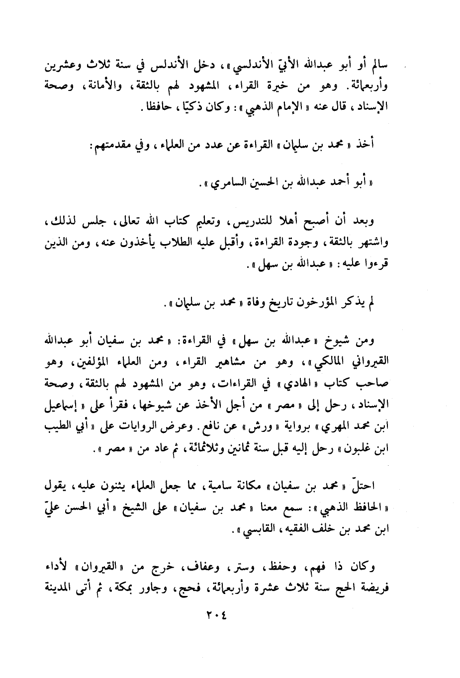 سالم أو أبو عبد الله الأبيّ الأندلسي»، دخل الأندلس في سنة ثلاث وعشرين وأربعمائة. وهو من خيرة القراء، المشهود لهم بالثقة، والأمانة، وصحة الإسناد، قال عنه «الإمام الذهبي»: وكان ذكيّا، حافظا.