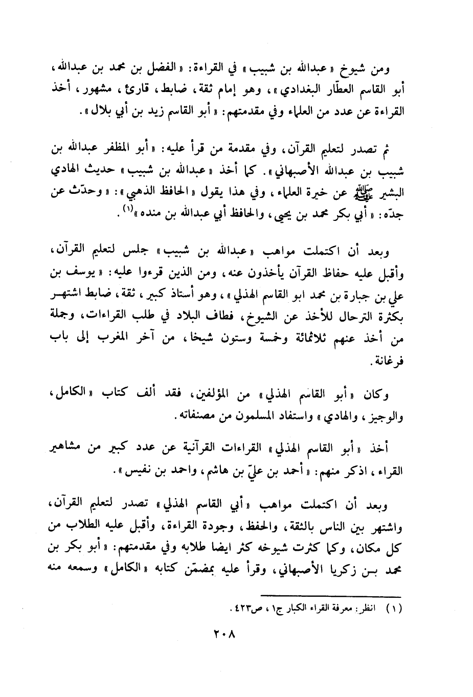 (¬1) انظر: معرفة القراء الكبار ج 1، ص 423.