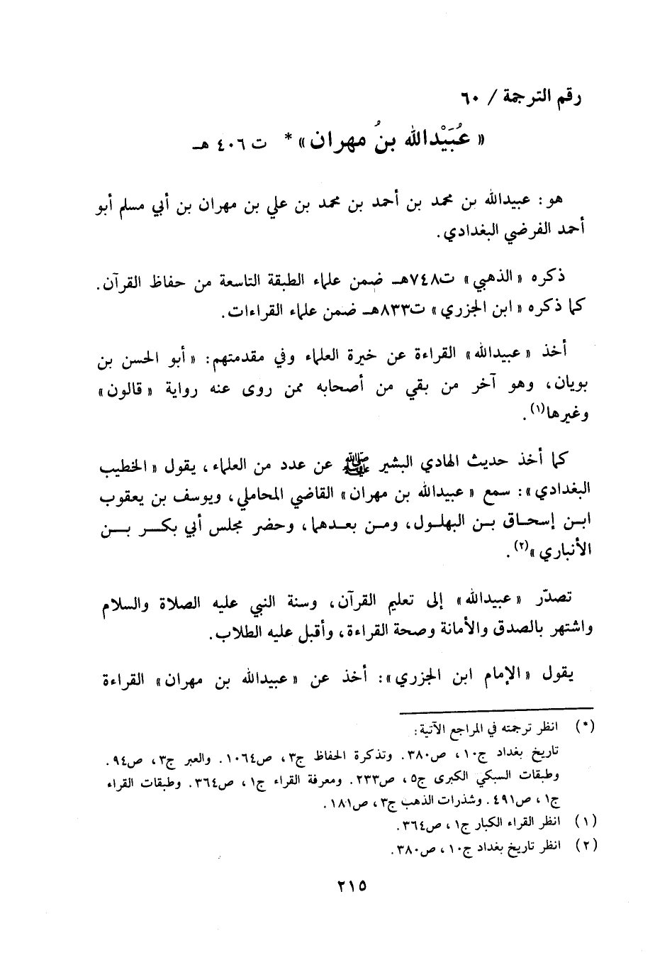 رقم الترجمة/ 60 «عبيد الله بن مهران» (¬1) ت 406 هـ