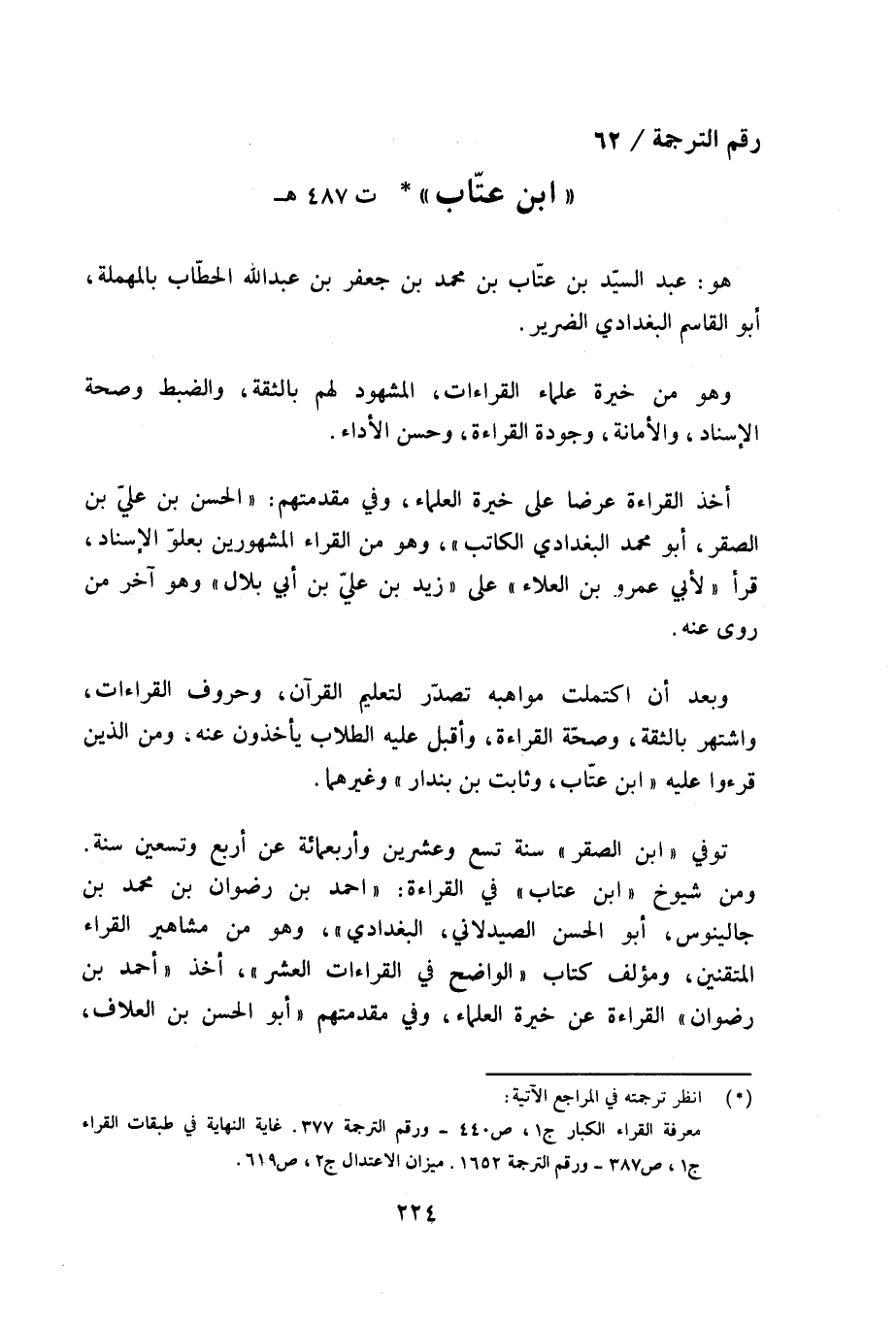 رقم الترجمة/ 62 «ابن عتّاب» (¬1) ت 487 هـ
