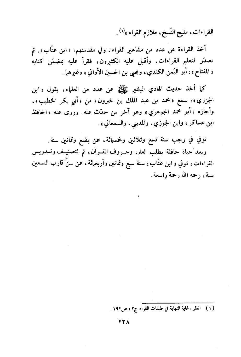 (¬1) انظر: غاية النهاية في طبقات القراء ج 2، ص 192.