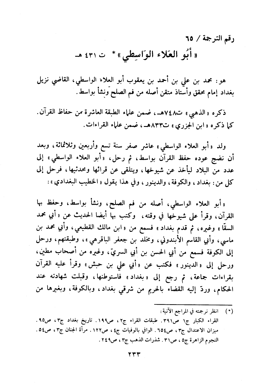رقم الترجمة/ 65 «أبو العلاء الواسطي» (¬1) ت 431 هـ