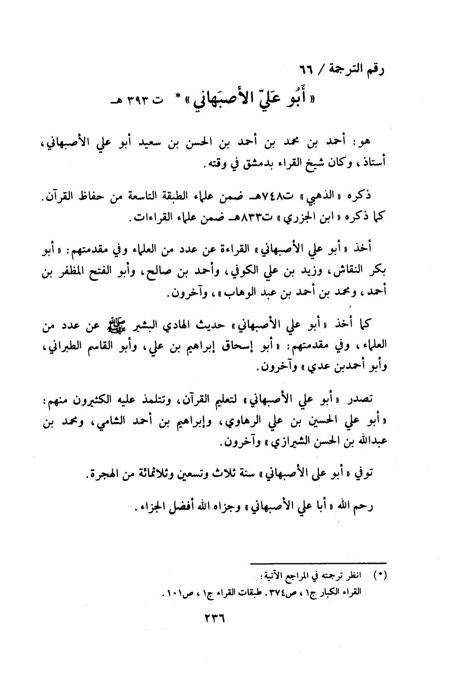 رقم الترجمة/ 66 «أبو عليّ الأصبهاني» (¬1) ت 393 هـ