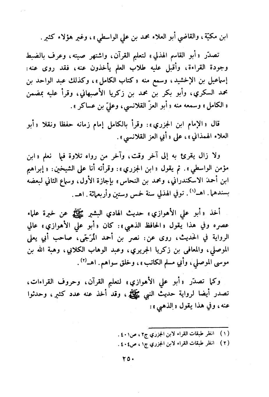 (¬2) انظر طبقات القراء لابن الجزري ج 1، ص 404.