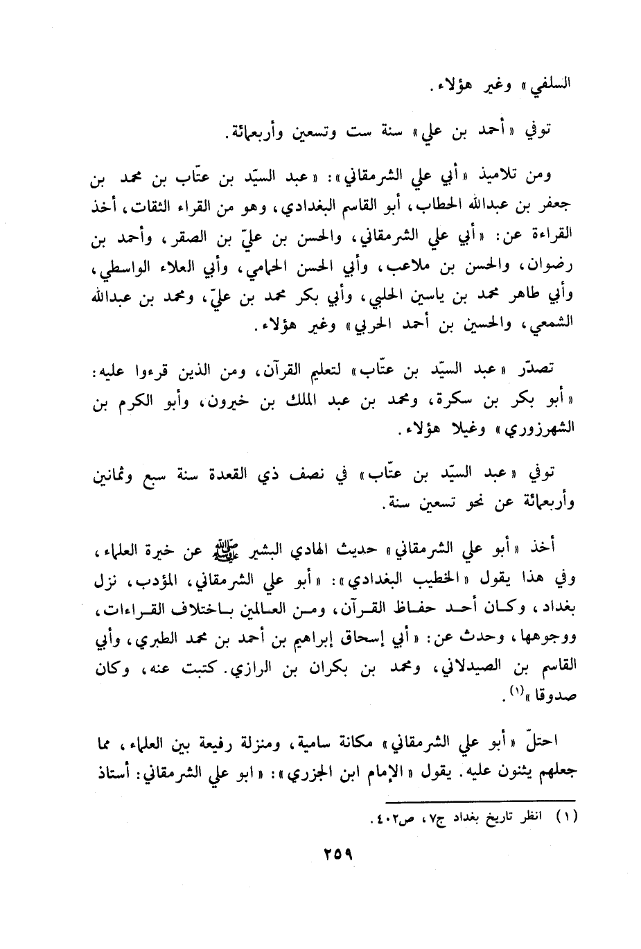 (¬1) انظر تاريخ بغداد ج 7، ص 402.