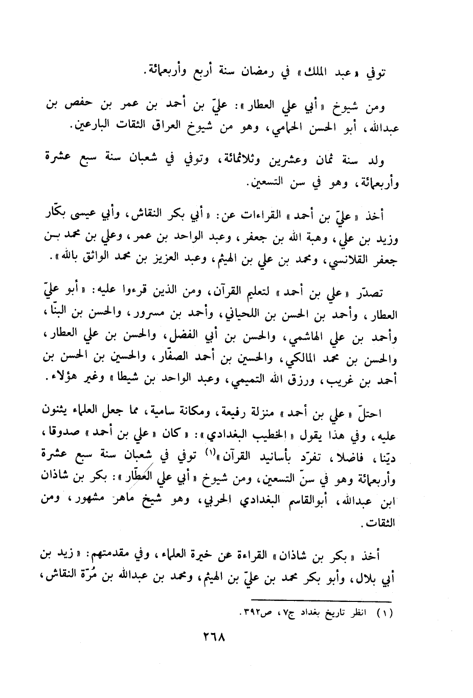 (¬1) انظر تاريخ بغداد ج 7، ص 392.