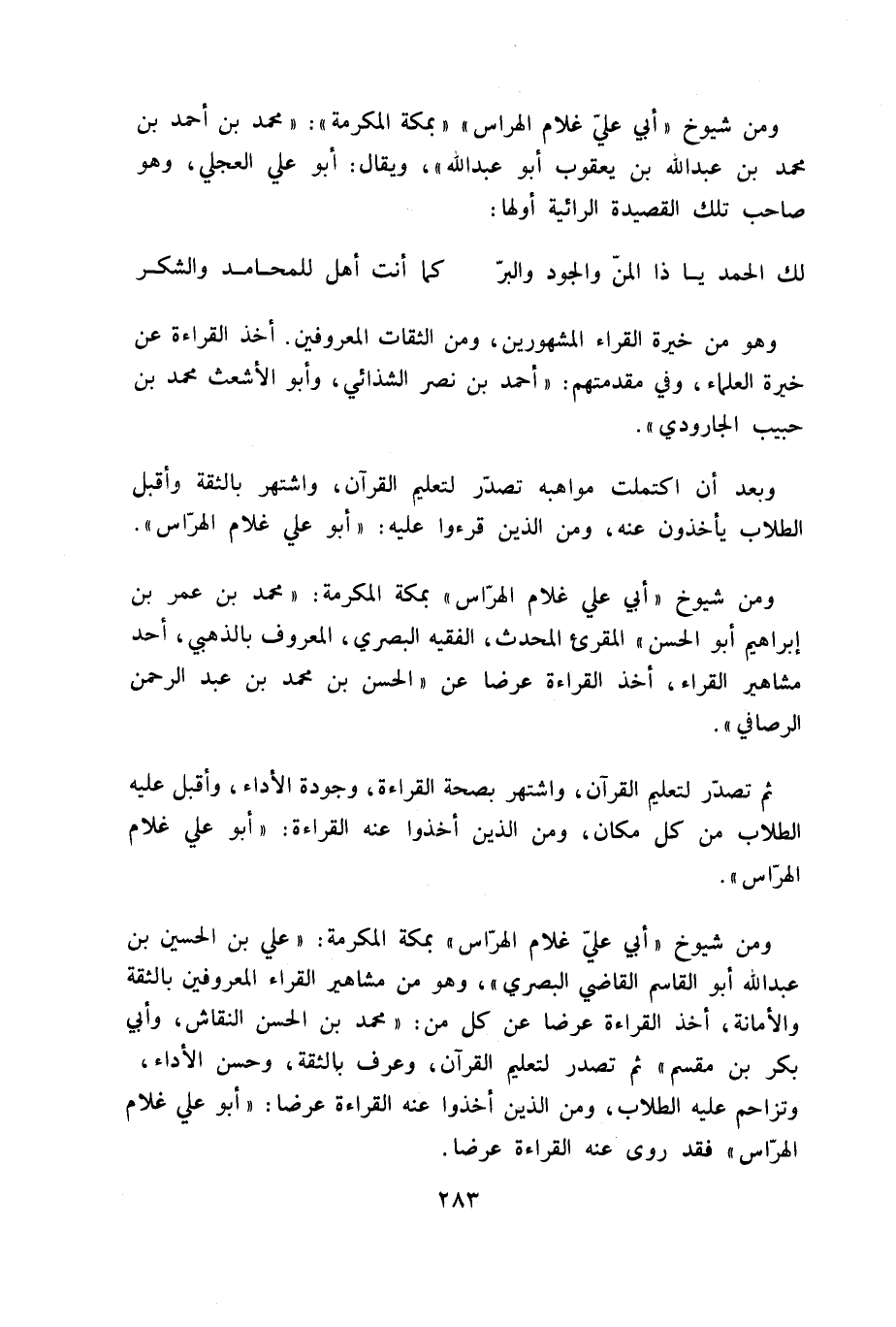 ومن شيوخ «أبي عليّ غلام الهراس» «بمكة المكرمة»: «محمد بن أحمد بن محمد بن عبد الله بن يعقوب أبو عبد الله»، ويقال: أبو علي العجلي، وهو صاحب تلك القصيدة الرائية أولها: