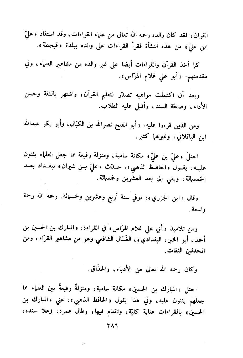 كما أخذ القرآن والقراءات أيضا على غير والده من مشاهير العلماء، وفي مقدمتهم: «أبو علي غلام الهرّاس».