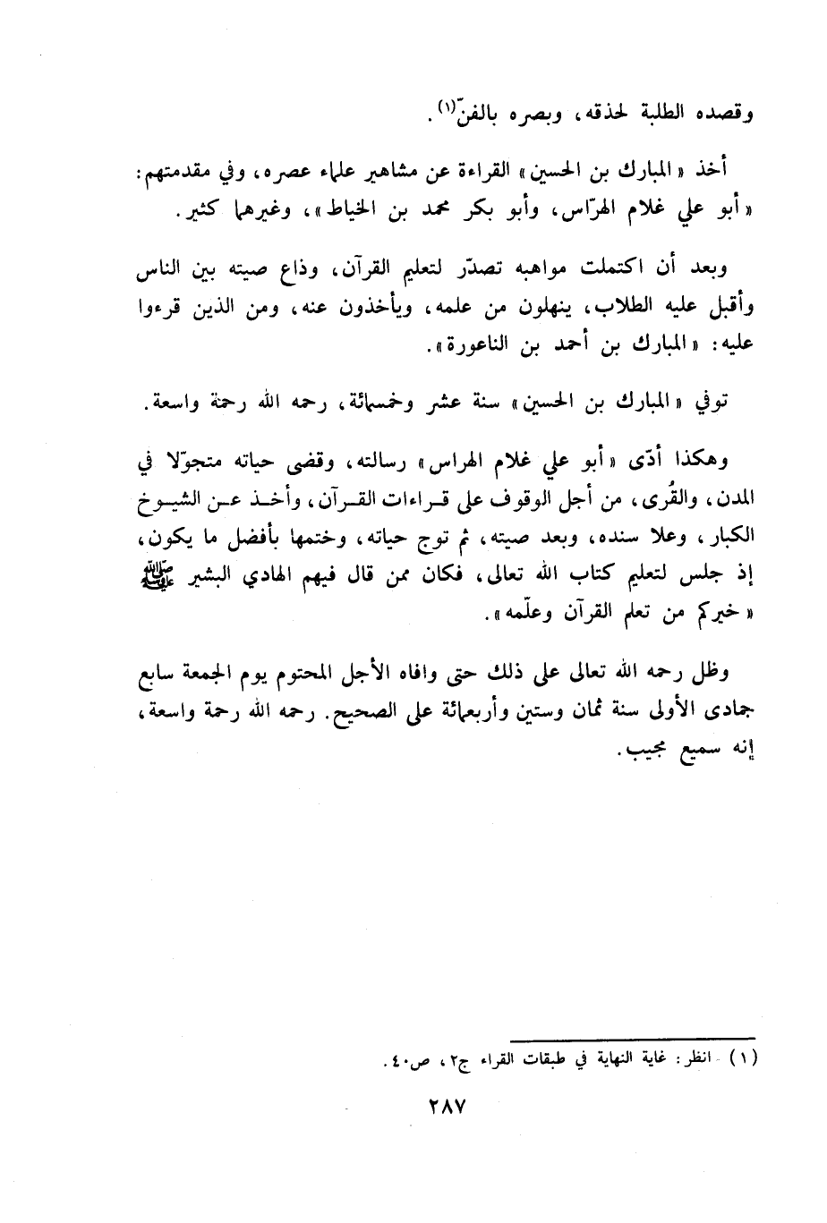 (¬1) انظر: غاية النهاية في طبقات القراء ج 2، ص 40.