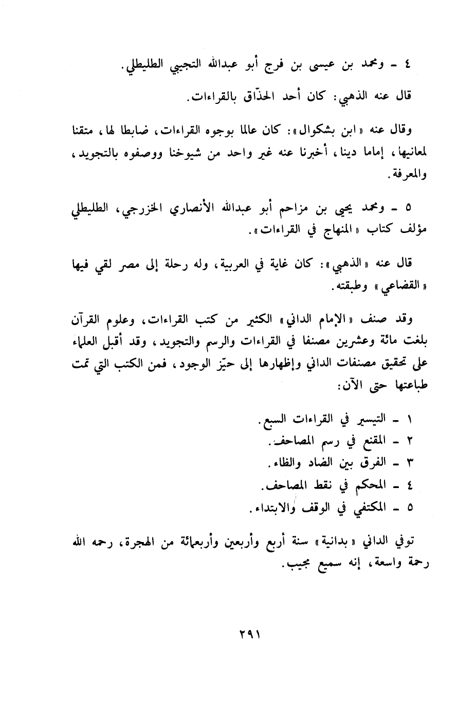 5 - ومحمد بن يحيى بن مزاحم أبو عبد الله الأنصاري الخزرجي، الطليطلي مؤلف كتاب «المنهاج في القراءات».