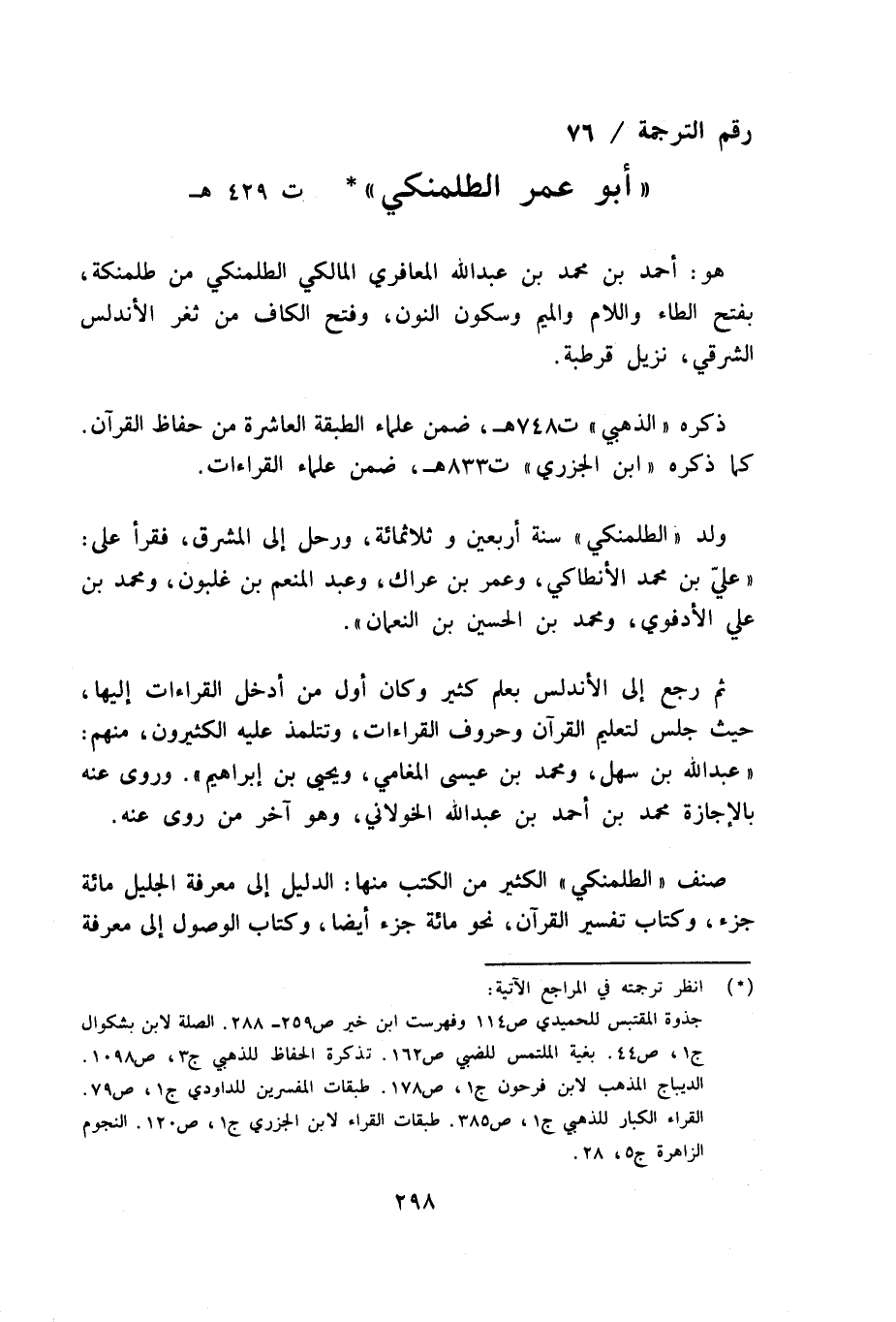 رقم الترجمة/ 76 «أبو عمر الطلمنكي» (¬1) ت 429 هـ