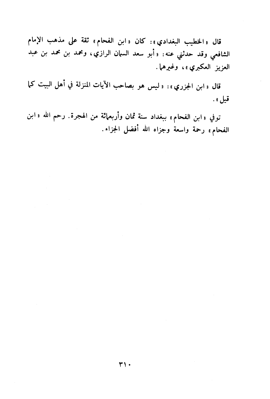 توفي «ابن الفحام» ببغداد سنة ثمان وأربعمائة من الهجرة. رحم الله «ابن الفحام» رحمة واسعة وجزاه الله أفضل الجزاء.