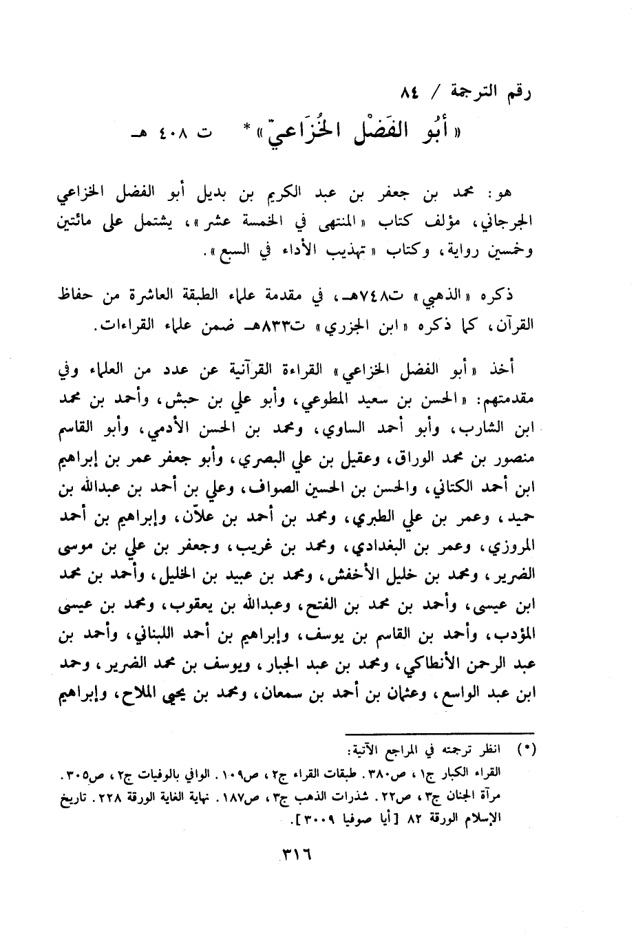 رقم الترجمة/ 84 «أبو الفضل الخزاعي» (¬1) ت 408 هـ