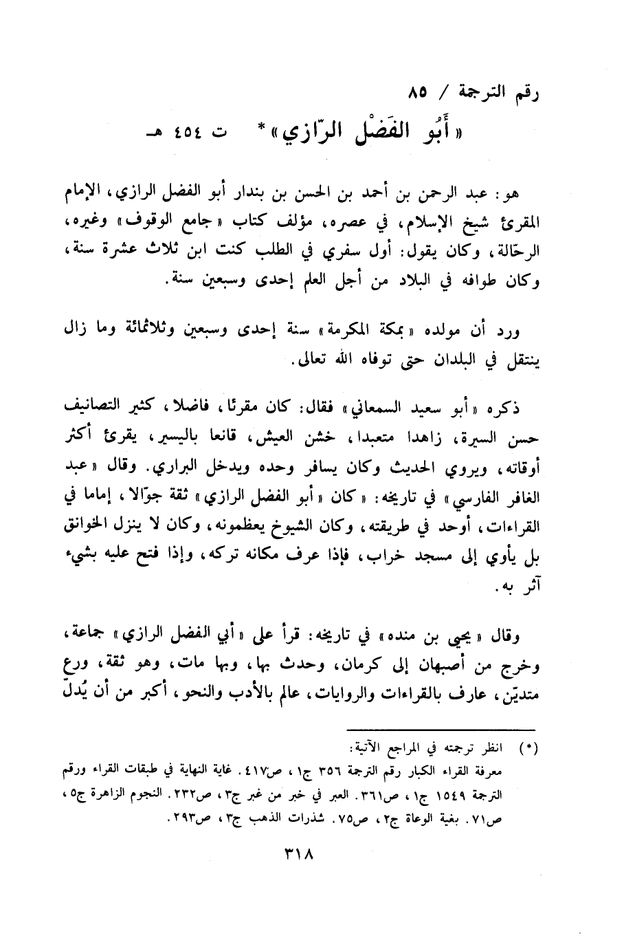 رقم الترجمة/ 85 «أبو الفضل الرّازي» (¬1) ت 454 هـ
