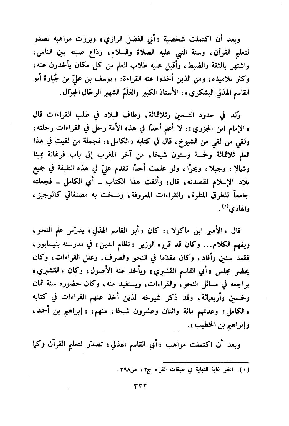 (¬1) انظر غاية النهاية في طبقات القراء ج 2، ص 398.