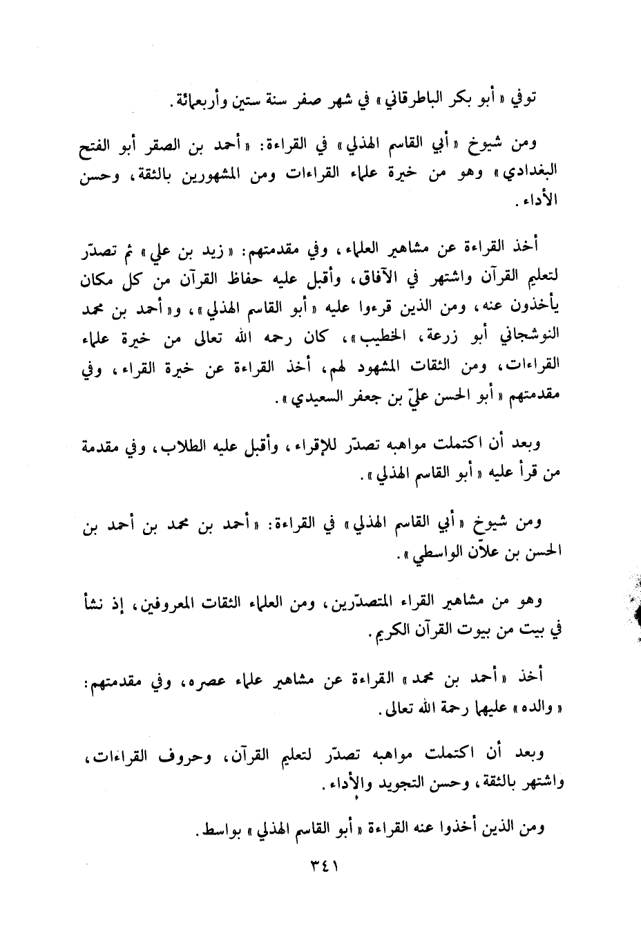 ومن الذين أخذوا عنه القراءة «أبو القاسم الهذلي» بواسط.