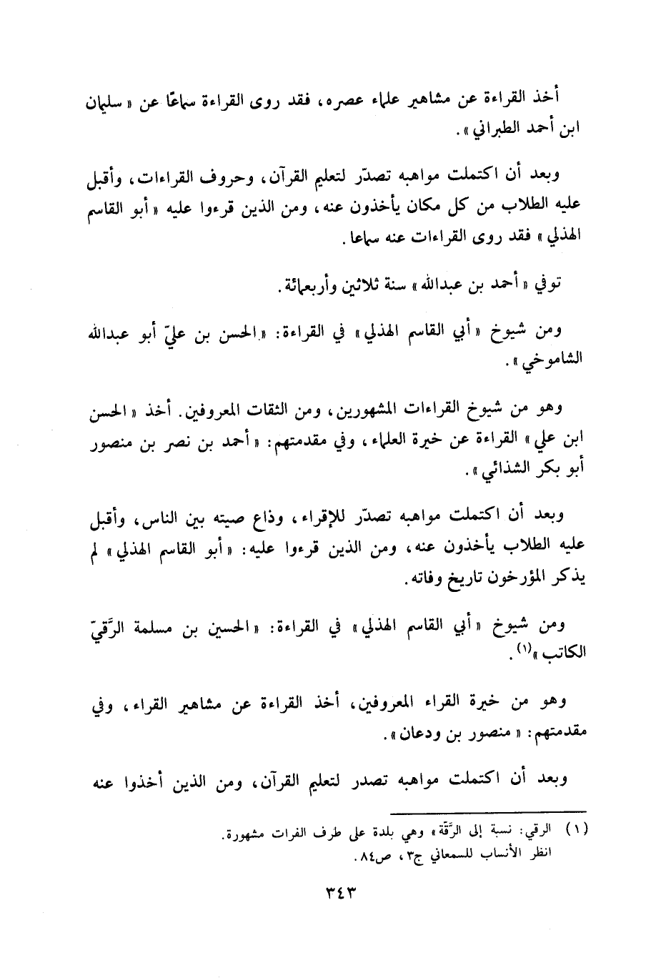 ومن شيوخ «أبي القاسم الهذلي» في القراءة: «الحسين بن مسلمة الرّقيّ الكاتب» (¬1).