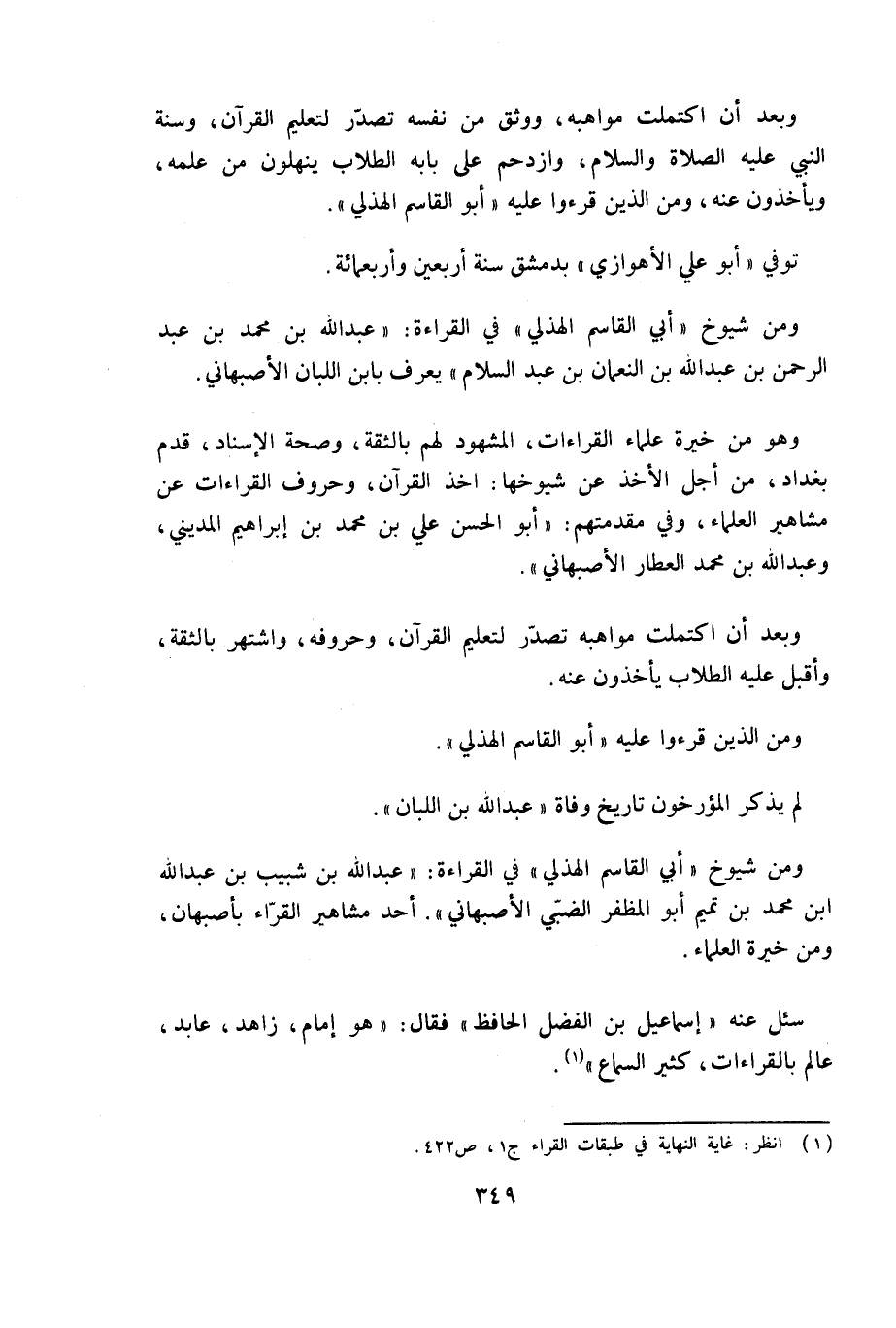 (¬1) انظر: غاية النهاية في طبقات القراء ج 1، ص 422.