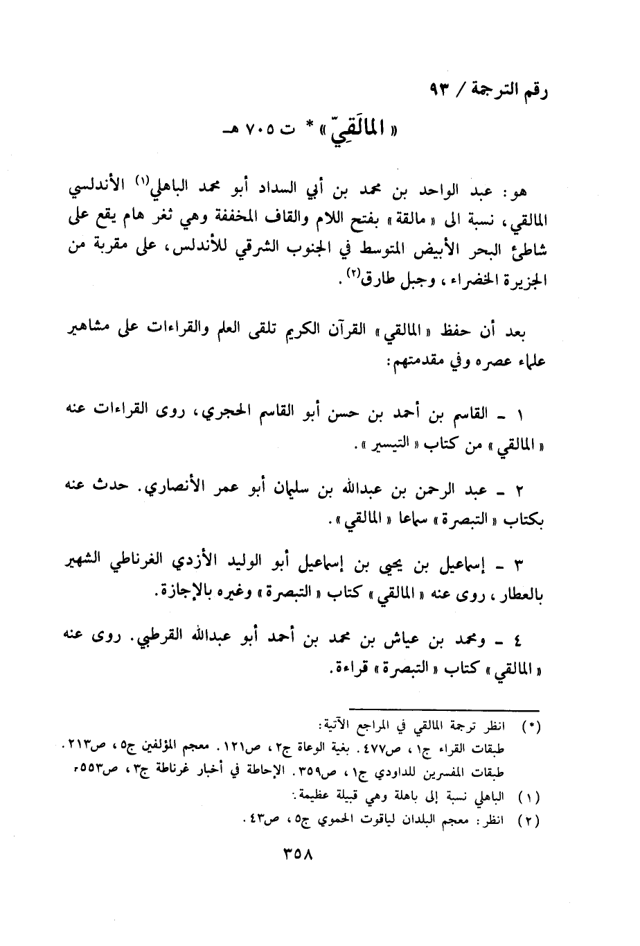 رقم الترجمة/ 93 «المالقيّ» (¬1) ت 705 هـ