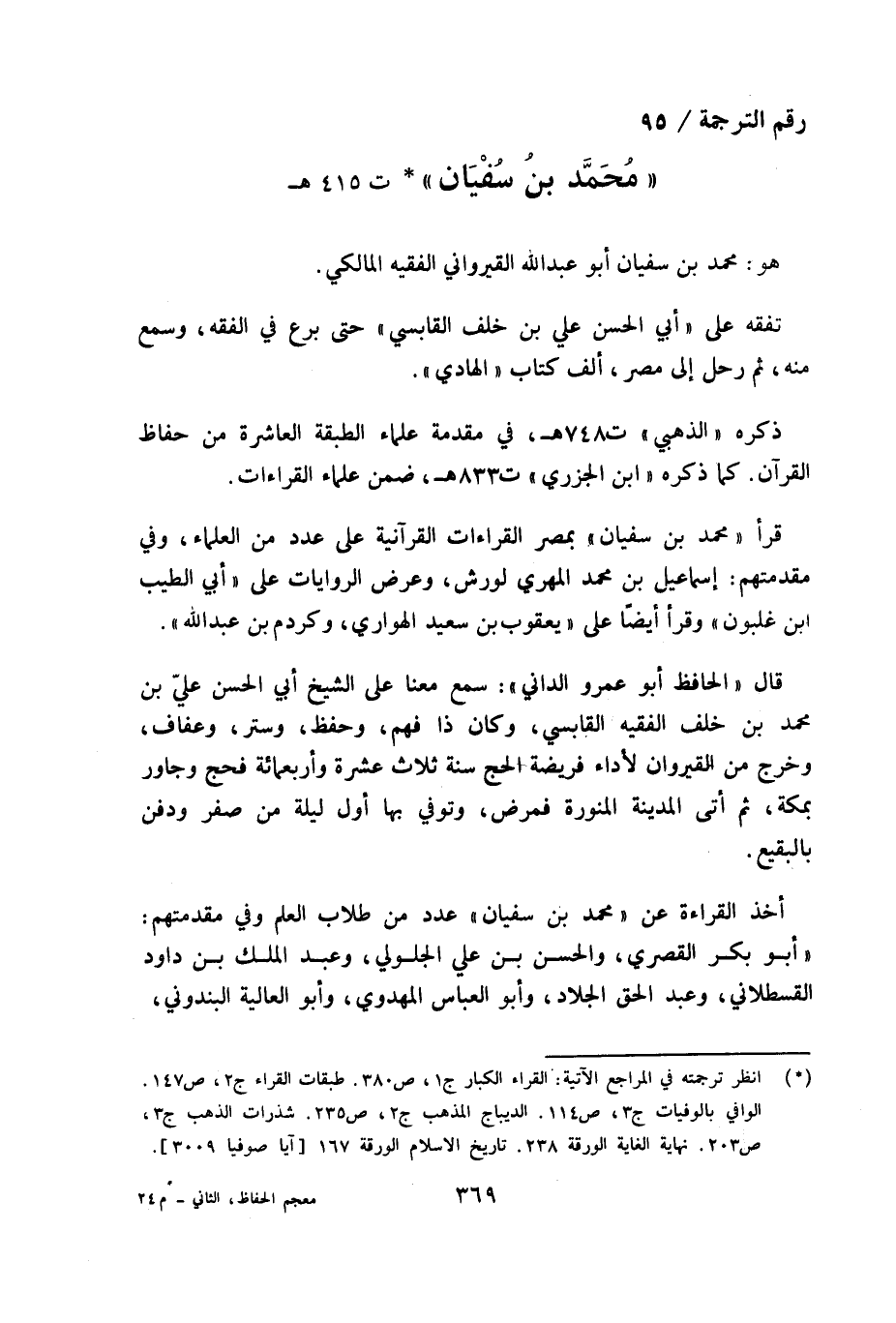 رقم الترجمة/ 95 «محمّد بن سفيان» (¬1) ت 415 هـ