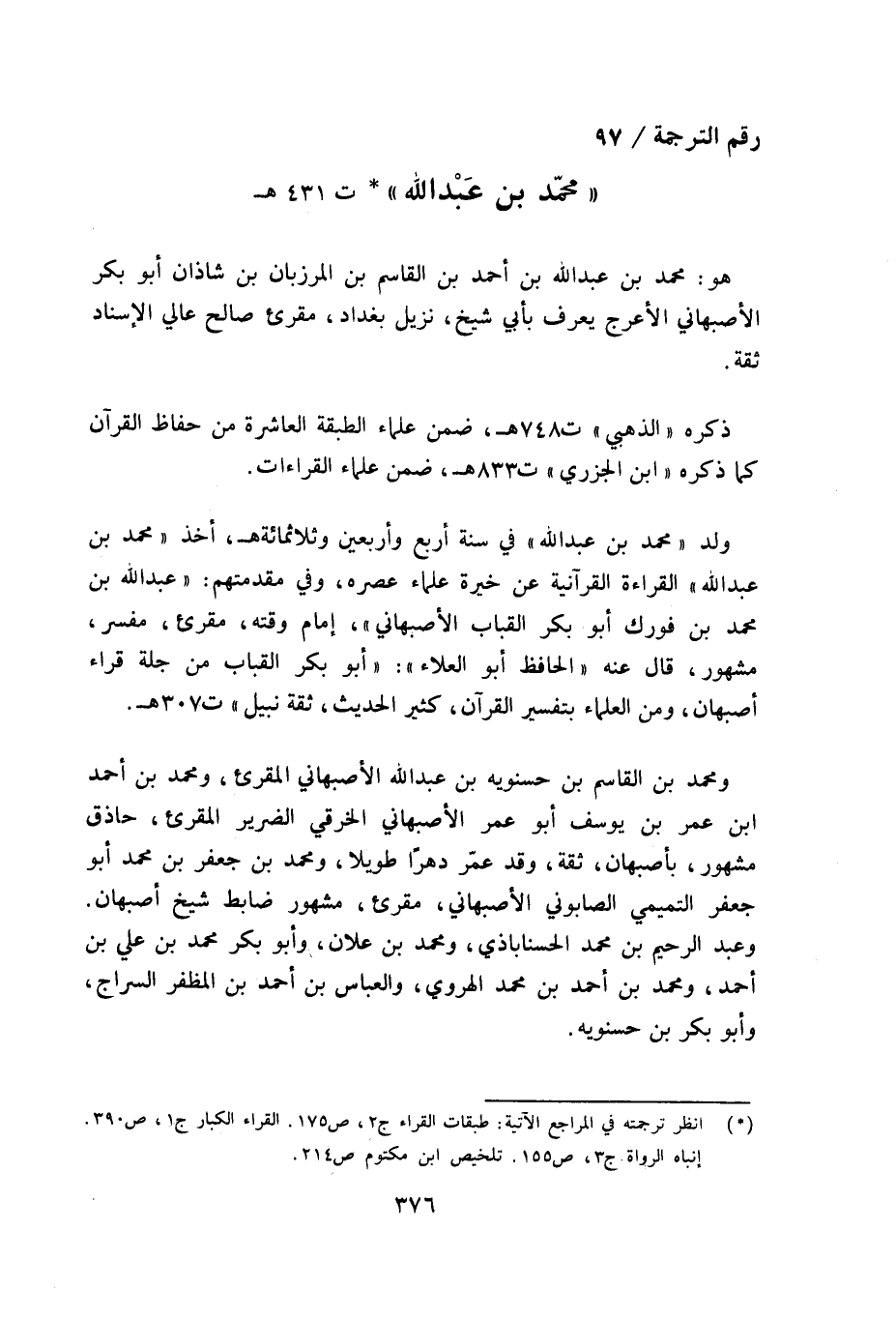 رقم الترجمة/ 97 «محمّد بن عبد الله» (¬1) ت 431 هـ