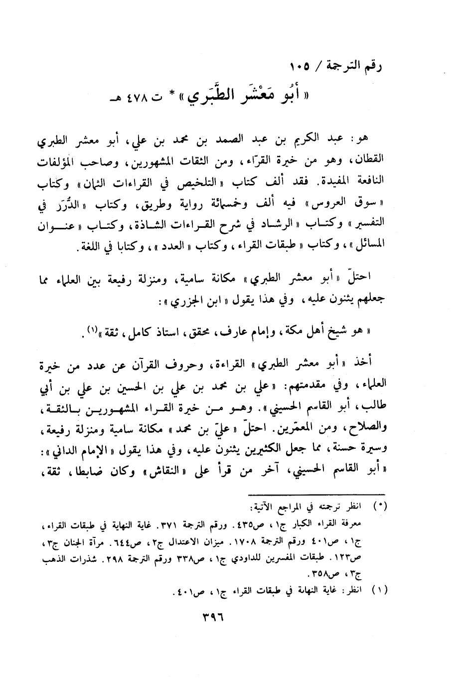 رقم الترجمة/ 105 «أبو معشر الطّبري» (¬1) ت 478 هـ