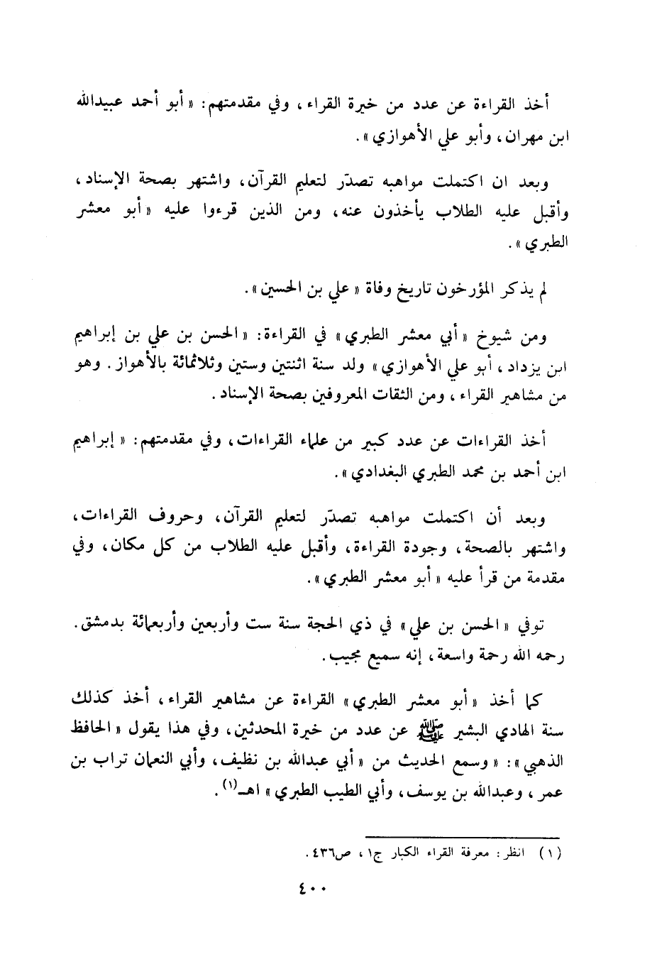 (¬1) انظر: معرفة القراء الكبار ج 1، ص 436.