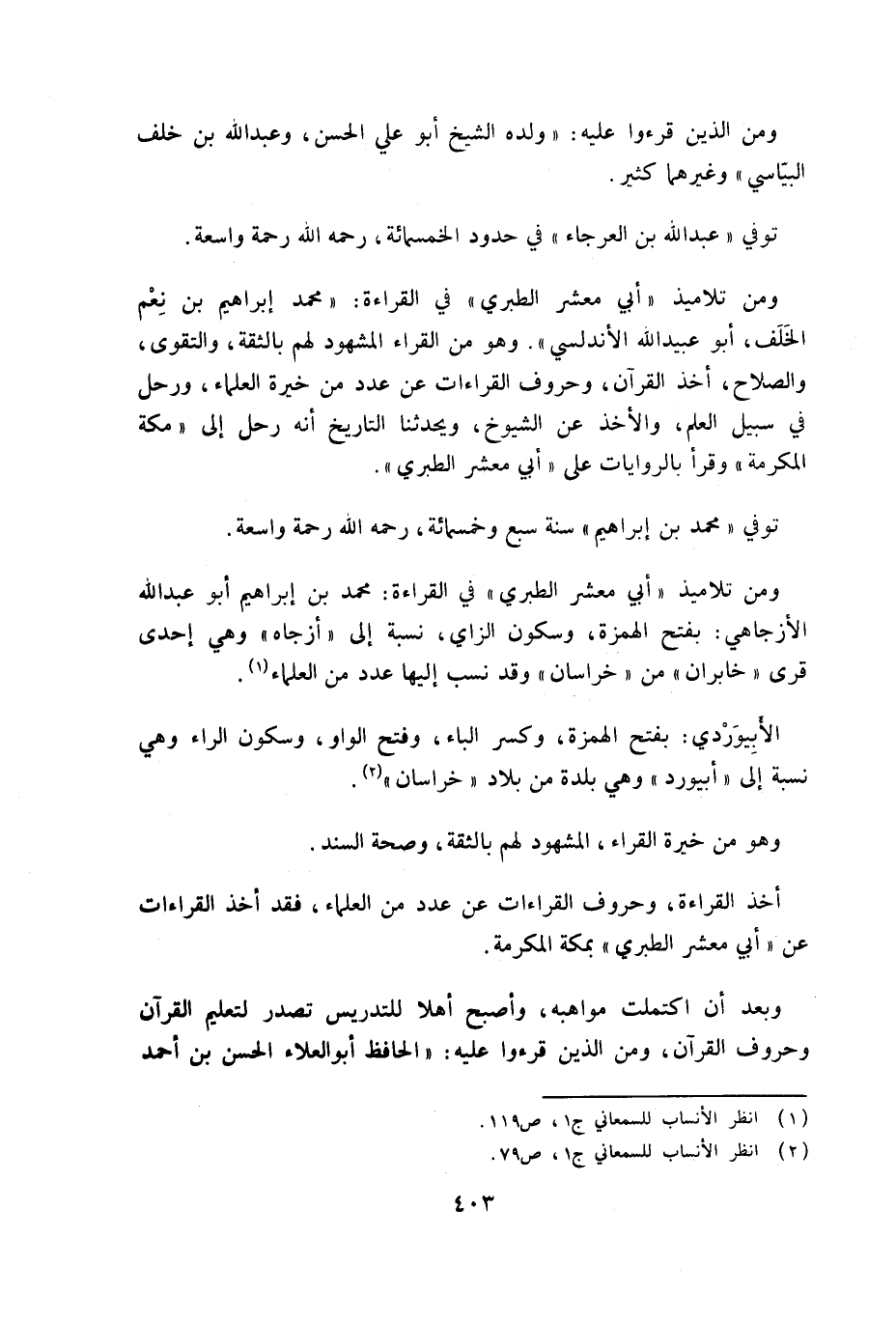 ومن تلاميذ «أبي معشر الطبري» في القراءة: محمد بن إبراهيم أبو عبد الله الأزجاهي: بفتح الهمزة، وسكون الزاي، نسبة إلى «أزجاه» وهي إحدى قرى «خابران» من «خراسان» وقد نسب إليها عدد من العلماء (¬1).