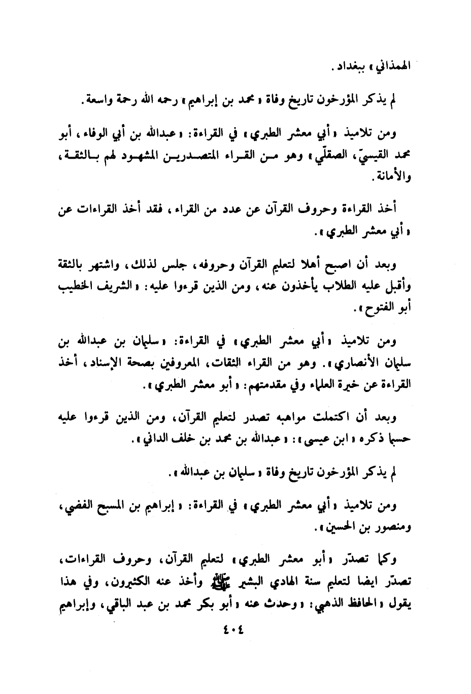 ومن تلاميذ «أبي معشر الطبري» في القراءة: «إبراهيم بن المسبح الفضي، ومنصور بن الحسين».