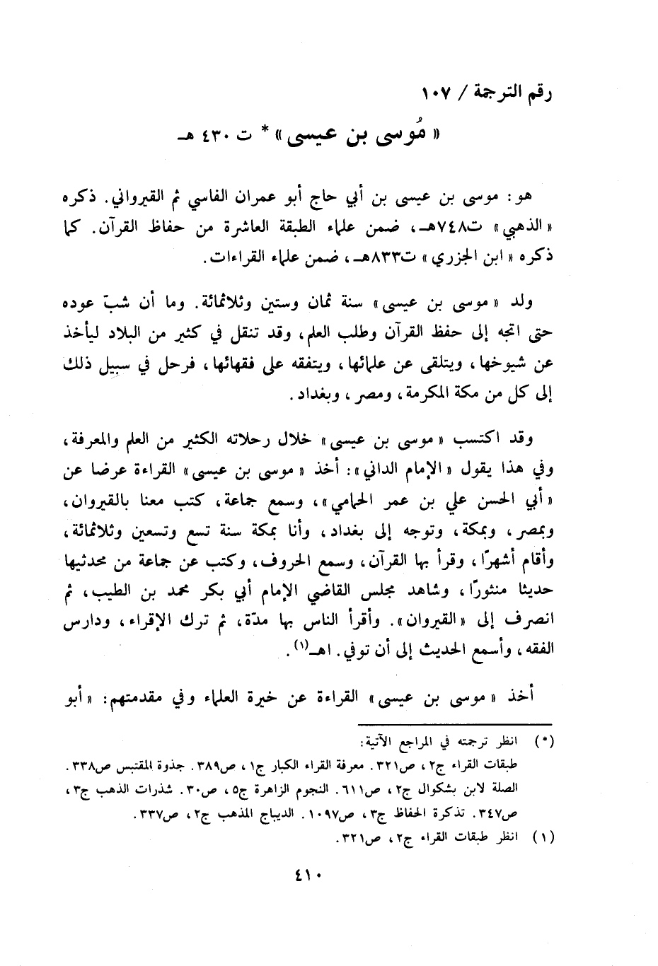 رقم الترجمة/ 107 «موسى بن عيسى» (¬1) ت 430 هـ