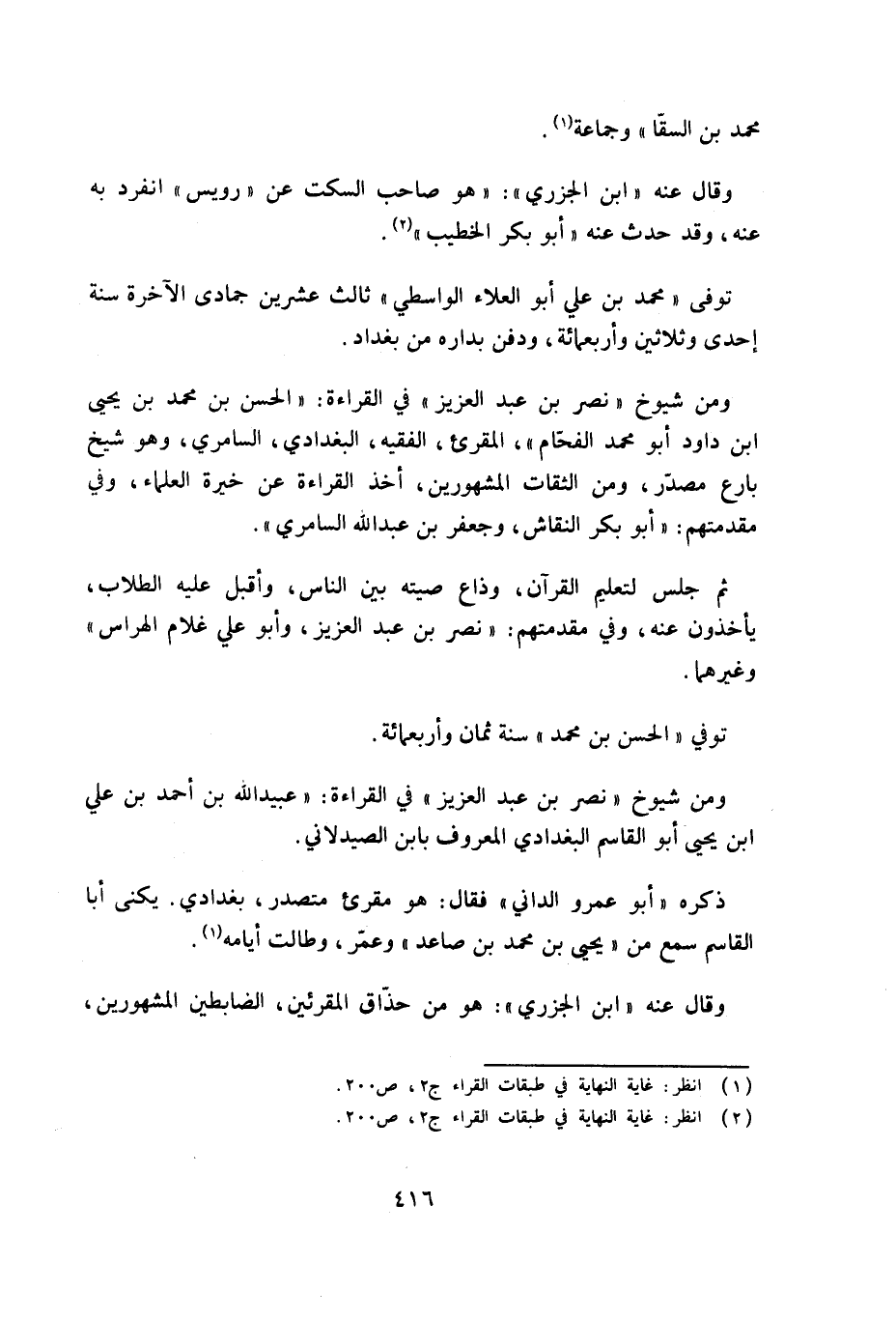 (¬2) انظر: غاية النهاية في طبقات القراء ج 2، ص 200.