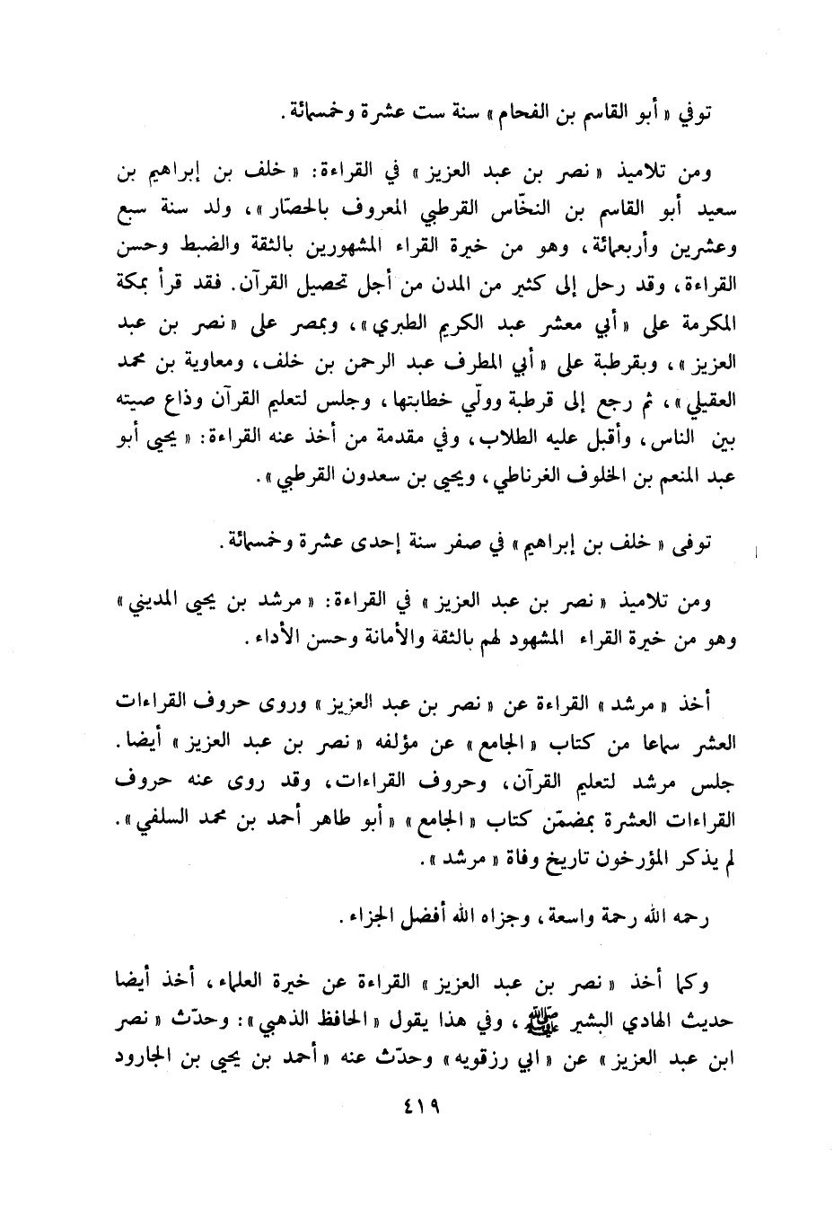 ومن تلاميذ «نصر بن عبد العزيز» في القراءة: «مرشد بن يحيى المديني» وهو من خيرة القراء المشهود لهم بالثقة والأمانة وحسن الأداء.