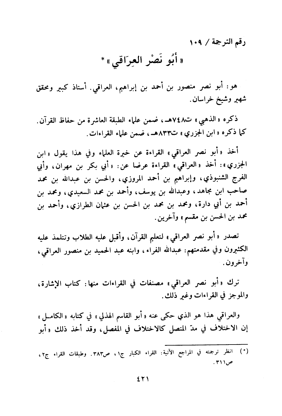 رقم الترجمة/ 109 «أبو نصر العراقي» (¬1)