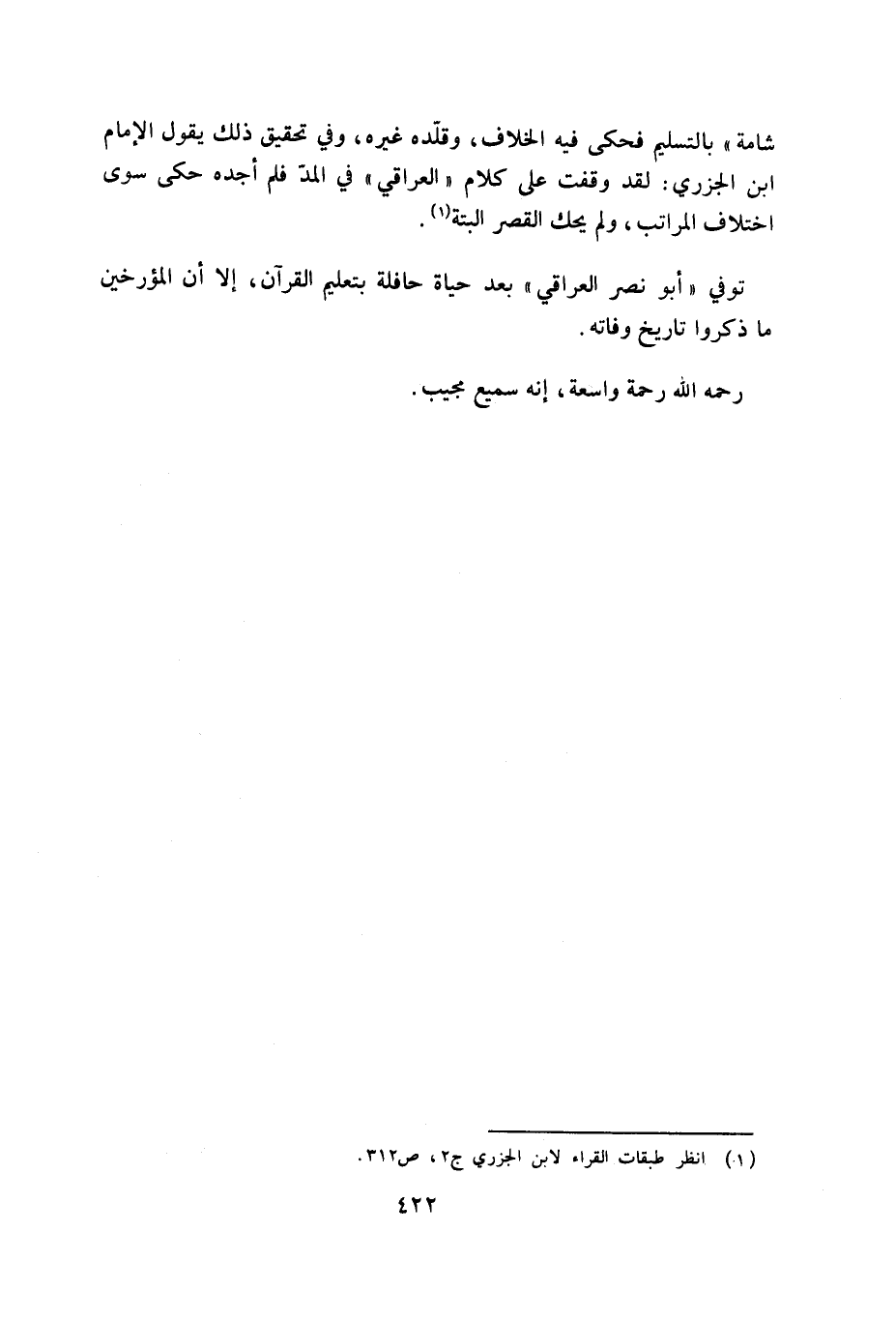 (¬1) انظر طبقات القراء لابن الجزري ج 2، ص 312.