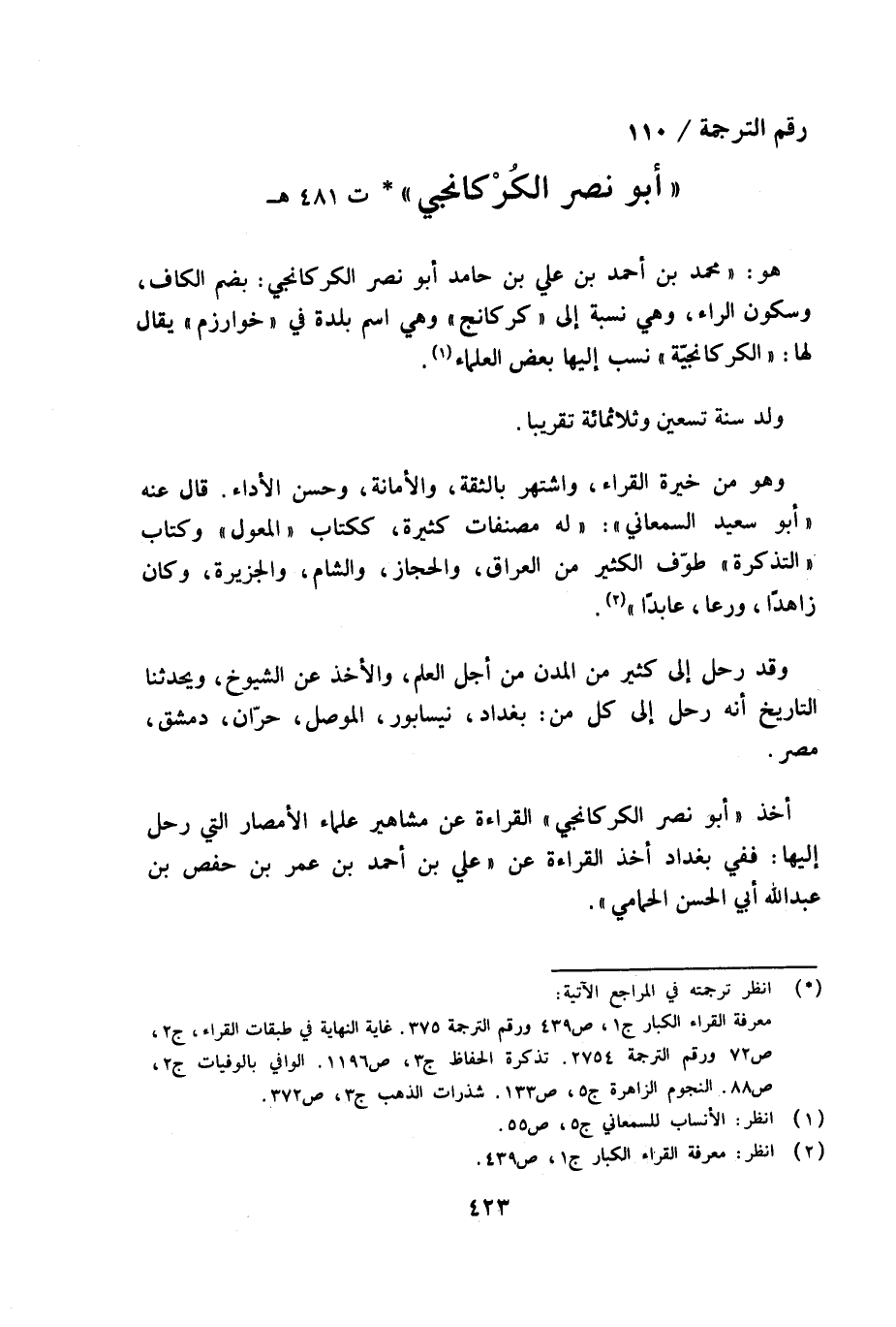 رقم الترجمة/ 110 «أبو نصر الكركانحي» (¬1) ت 481 هـ
