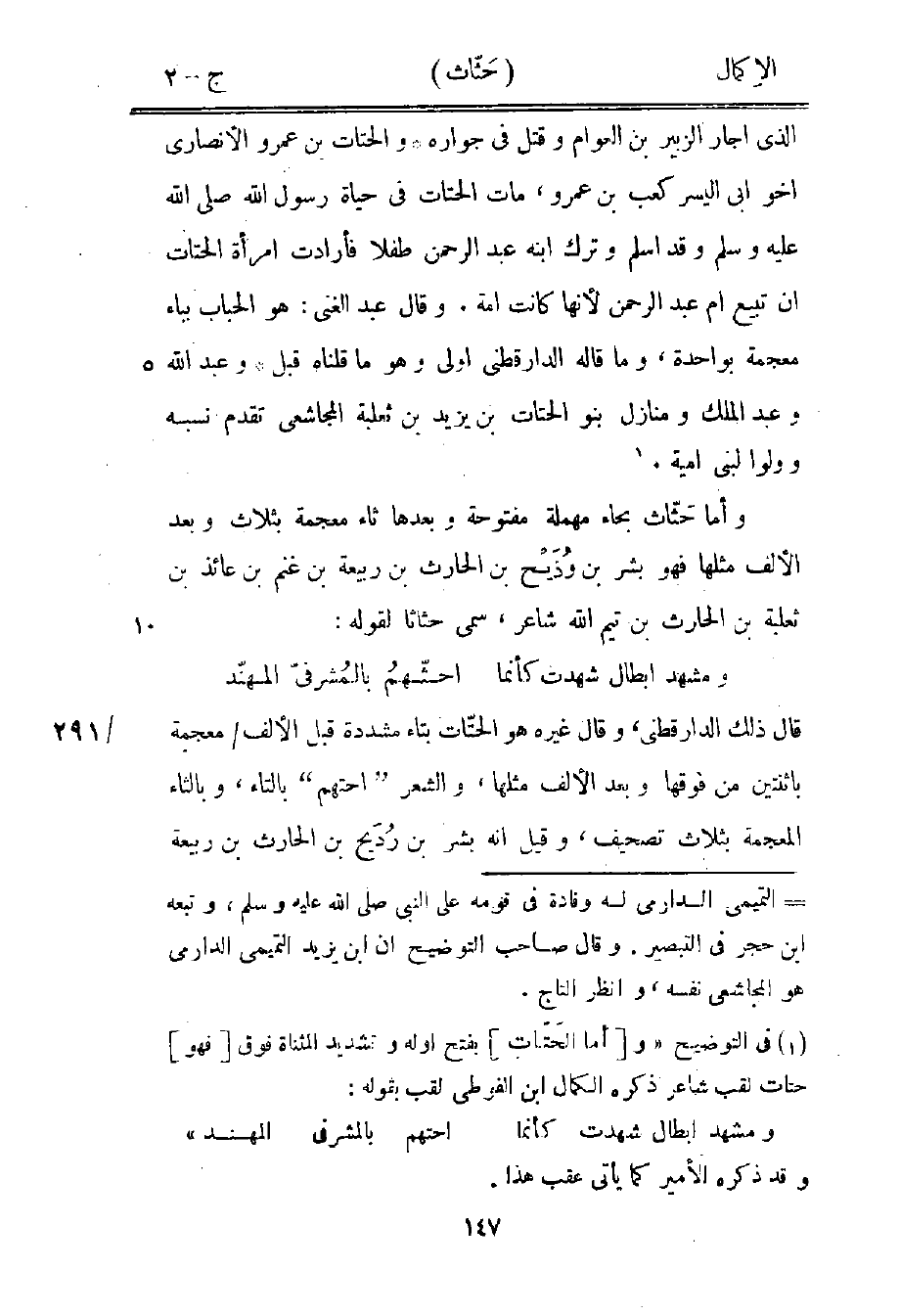 1 في التوضيح "و [أما الحتات] بفتح أوله وتشديد المثناة فوق [فهو] حتات لقب شاعر ذكره الكمال ابن الفوطي لقب بقوله: