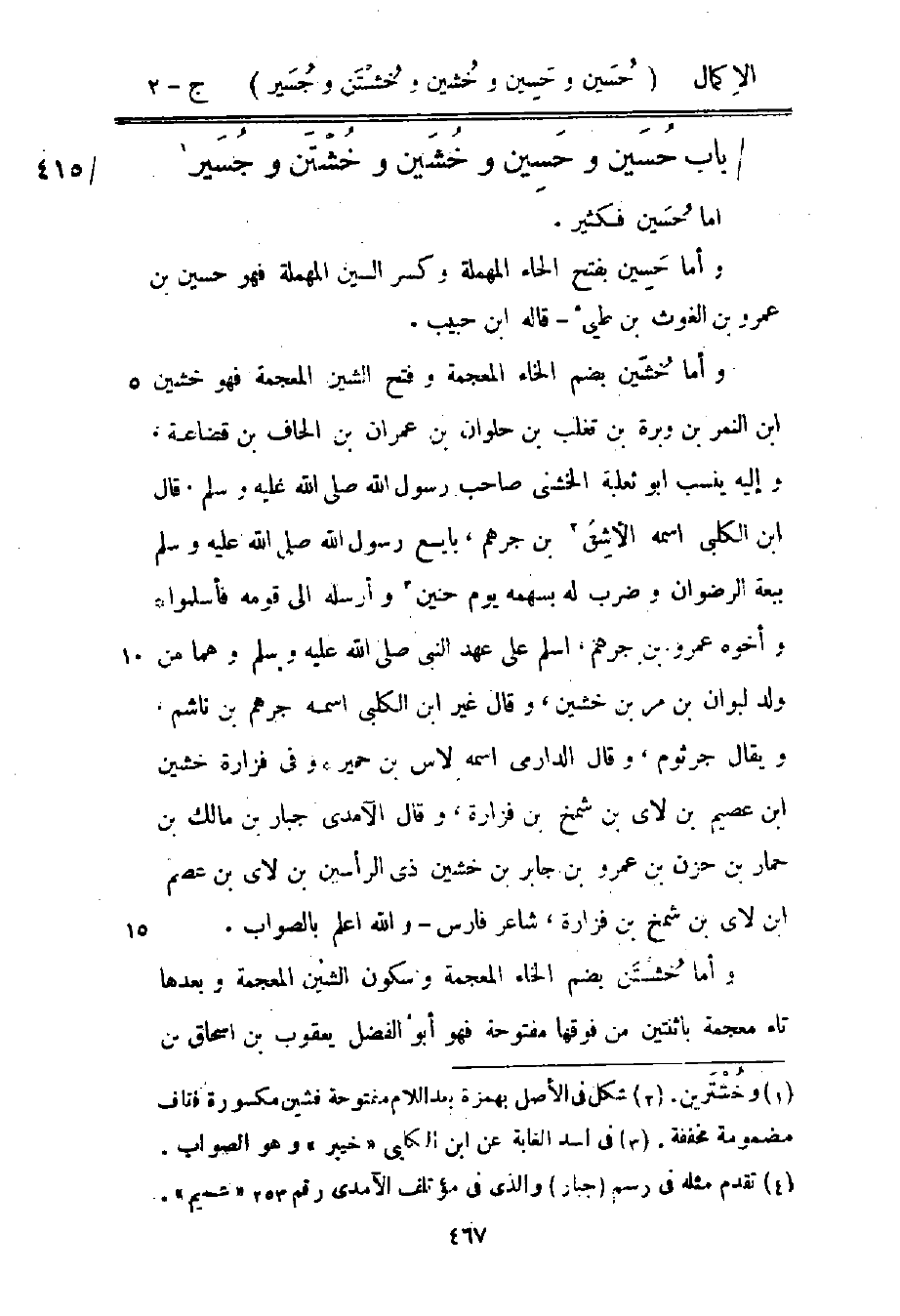 باب: حُسَين وحَسِين وخُشَين وخُشْتَن وجُسَير 1