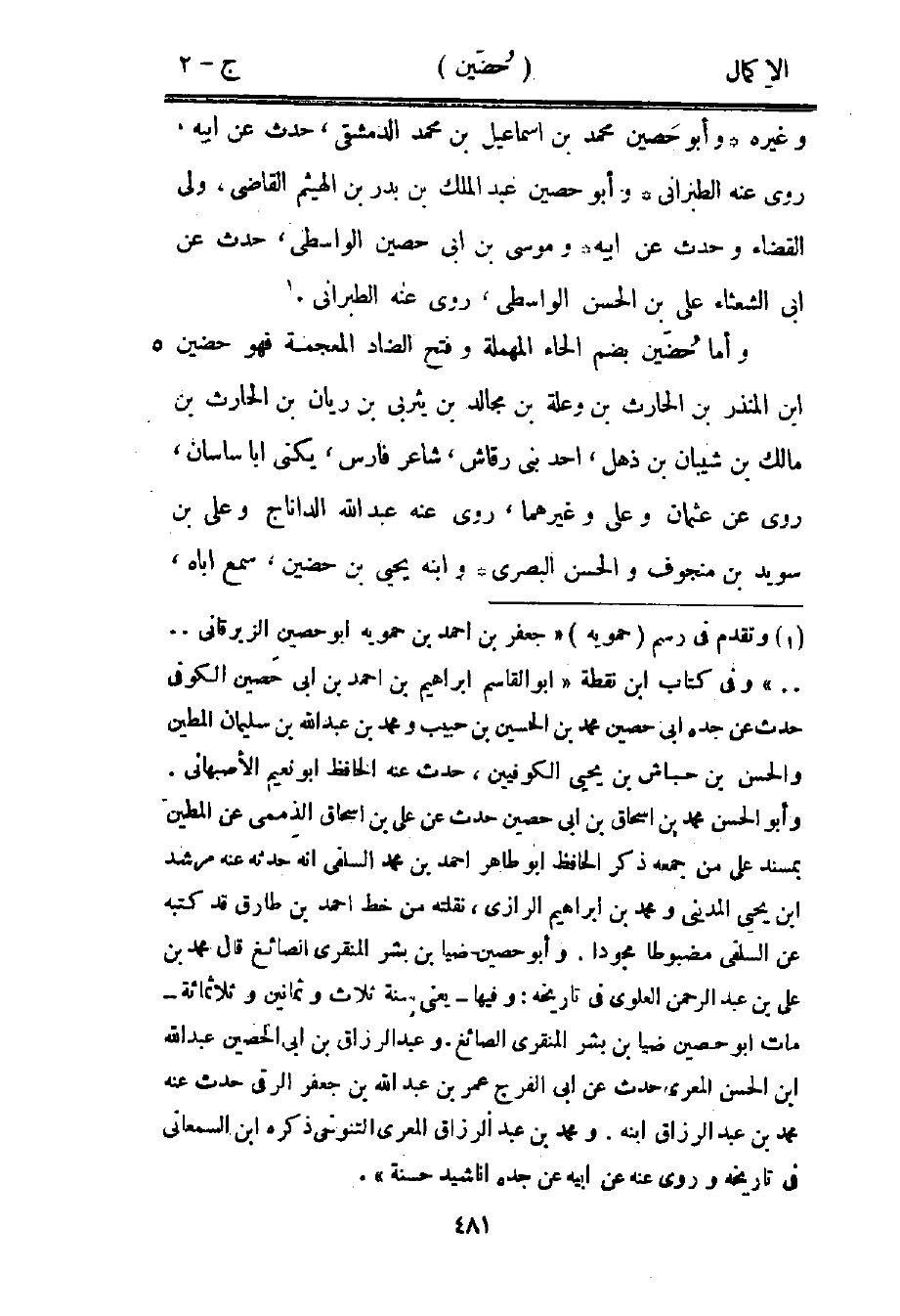 1 تقدم في رسم "حمويه" "جعفر بن أحمد بن حمويه أبو حصين الزبرقاني ... " وفي كتاب ابن نقطة "أبو القاسم إبراهيم بن أحمد بن أبي حصين الكوفي حدث عن جده أبي حصين محمد بن الحسين بن حبيب ومحمد بن عبد الله بن سليمان المطين والحسن بن حباش بن يحيى الكوفيين، حدث عنه الحافظ أبو نعيم الأصبهاني.